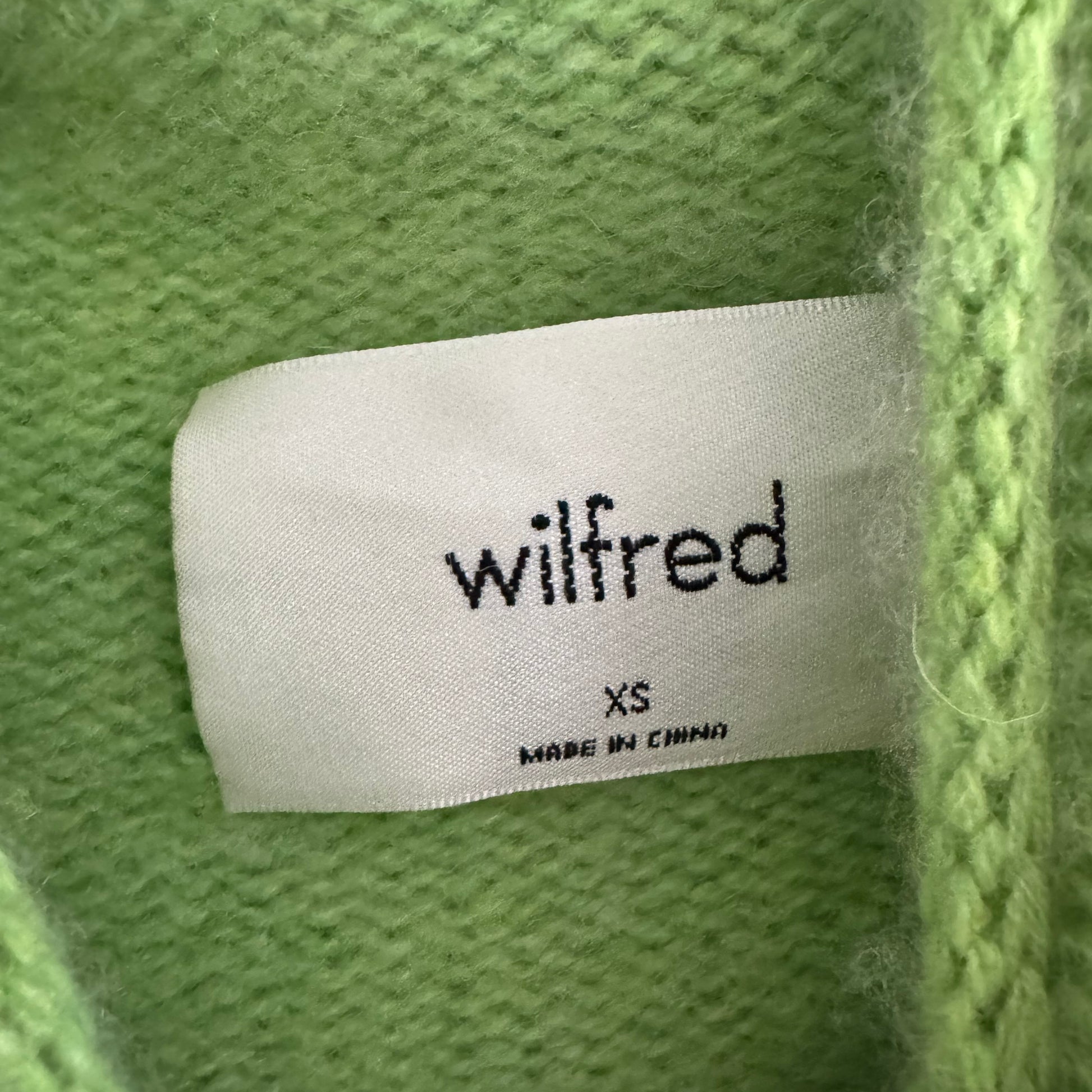 Wilfred Cashmere Turtleneck in Lime Green, size XS. Fits true to size. An incredible colour - so pretty for wear in any season. 19 inches armpit to armpit. 22.5 inches in length. 100% cashmere. Lightly worn and in very good condition. Originally $228CAD, and selling here for $75CAD!