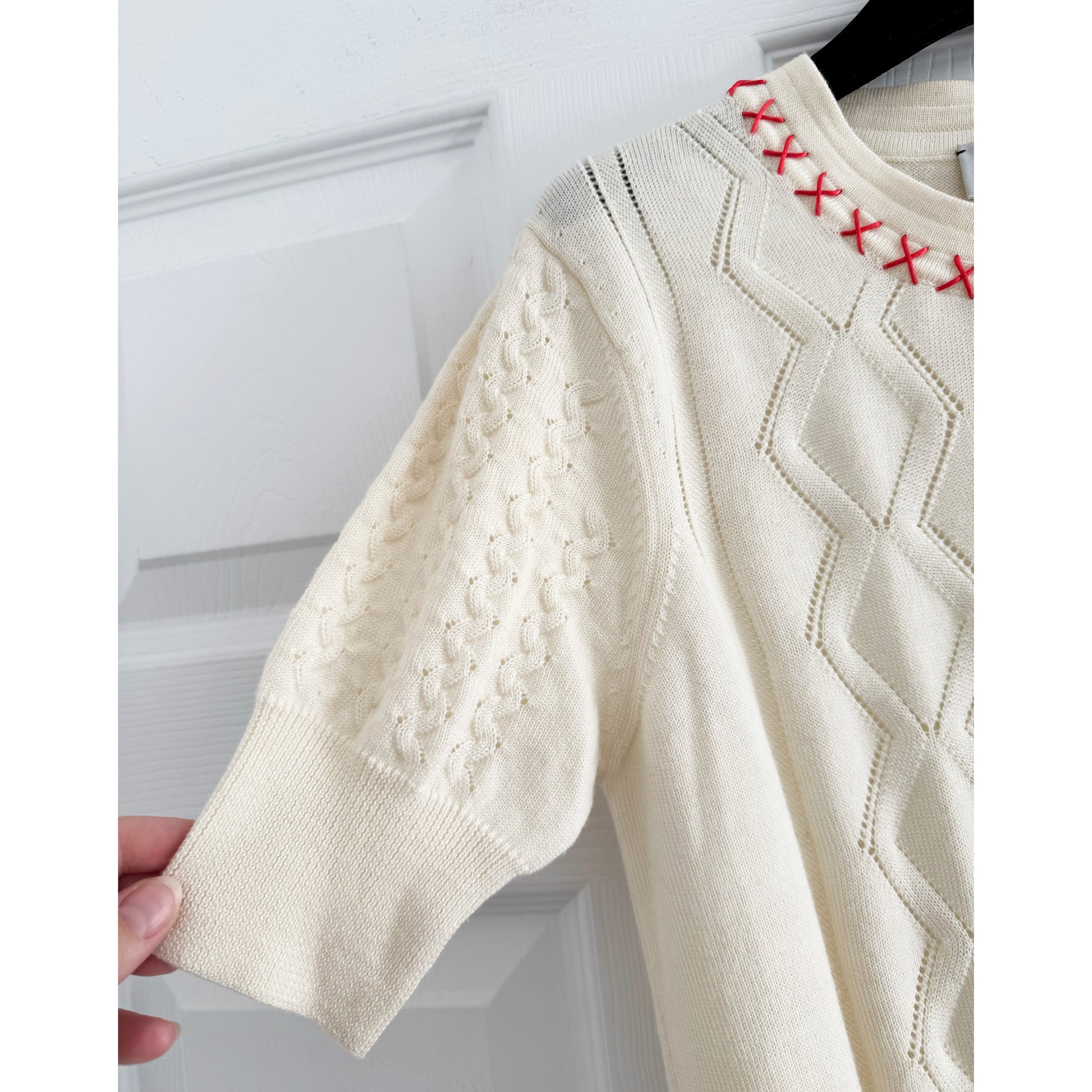 Pull court « Cross Stitch » en laine mérinos blanche Carven, Taille S (convient comme XS)