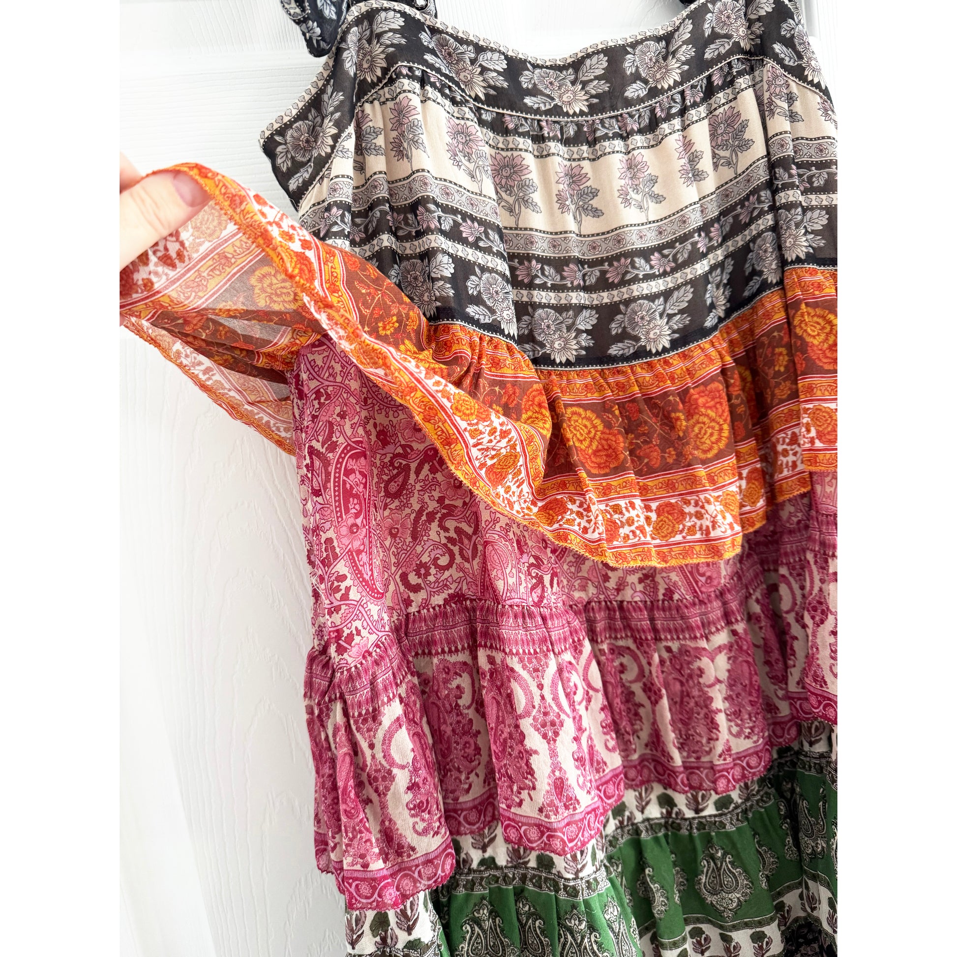 Jupe Zimmermann "Amari", taille "0" (convient comme XXS/XS). Tout neuf avec étiquettes ! Probablement le plus beau tissu de toutes les archives de beaux tissus de Zimmermann - celui-ci m'attire vraiment ! Les couleurs sont à la fois vives et douces. La coupe est si féminine, mais pas girly – juste si sexy, dans ce genre latino. À porter avec un haut court et des chaussures plates ou des talons hauts (selon l'occasion). J'adore cela pour un moment de fête - qu'il s'agisse d'un bon déjeuner et d'un après-midi de shopping en vacances, d'un dîner en ville ou d'un événement, comme un mariage peut-être ? Il va partout où vous voulez être superbe ! 76% coton, 24% soie. À l'origine plus de 1 000 $ CAD, et vendu ici pour 295 $ CAD !!!
