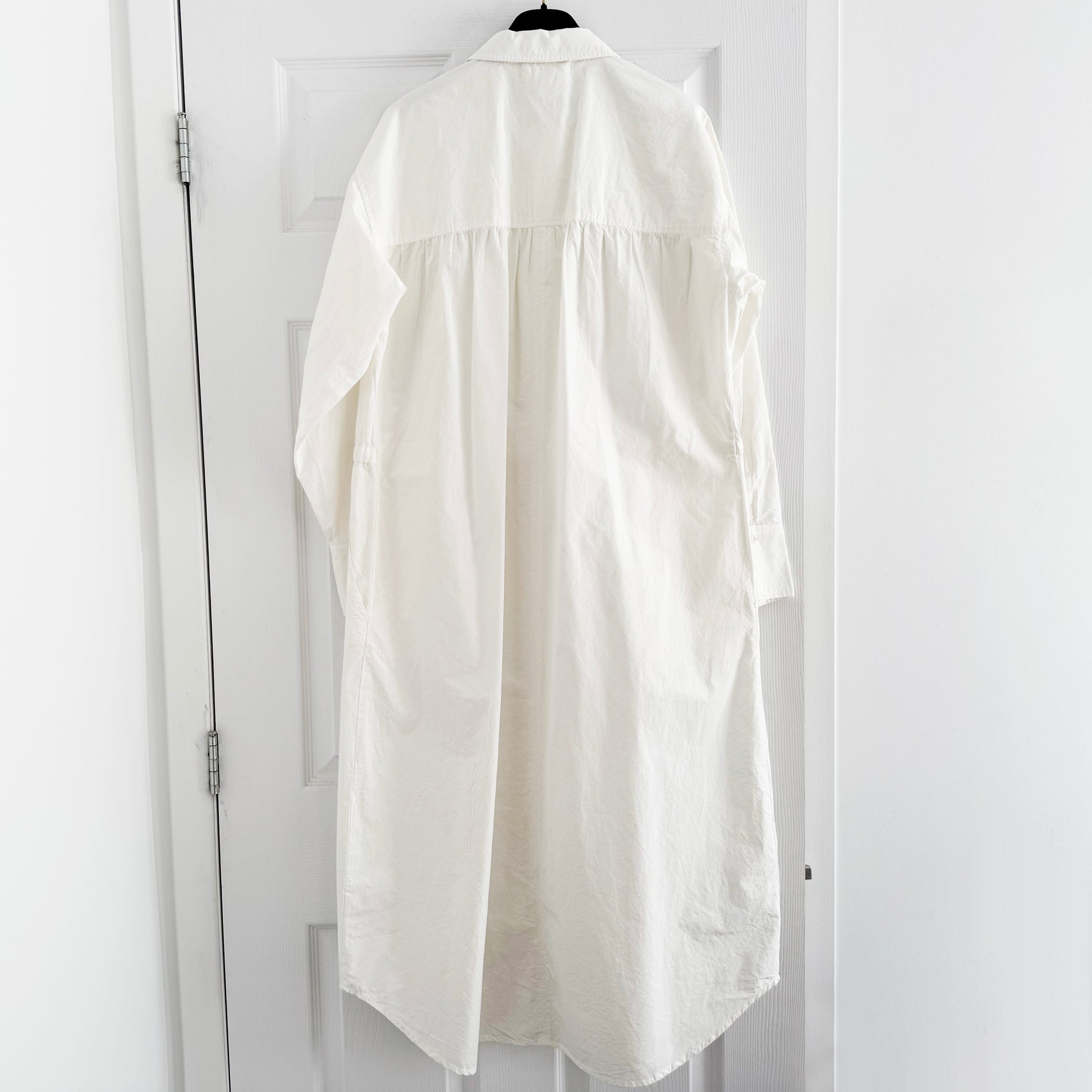 Apiece Apart "Molto" Dress in White, size XS/S. Fits true to size - a little wiggle room since it has a drawstring tie waist. I LOVE a shirtdress - it never fails you! This timeless beauty works as a dress in the city, just as nicely as a piece for away on vacay. I think it's so chic - pair with anything from a western boot in transitional temps, to a sandal on warmer days. The fabric is beautiful, not too thin, with a gorgeous, almost like lightly crinkled texture. 21 inches armpit to armpit. 21 inches flat across at the waist. 24 inches flat at the hips. 17 inches from shoulder to waistband, and 47 inches from shoulder to hem. 100% organic cotton. Worn twice and in excellent condition, freshly dry cleaned and in excellent condition. Originally $585CAD, and selling here for $165CAD!