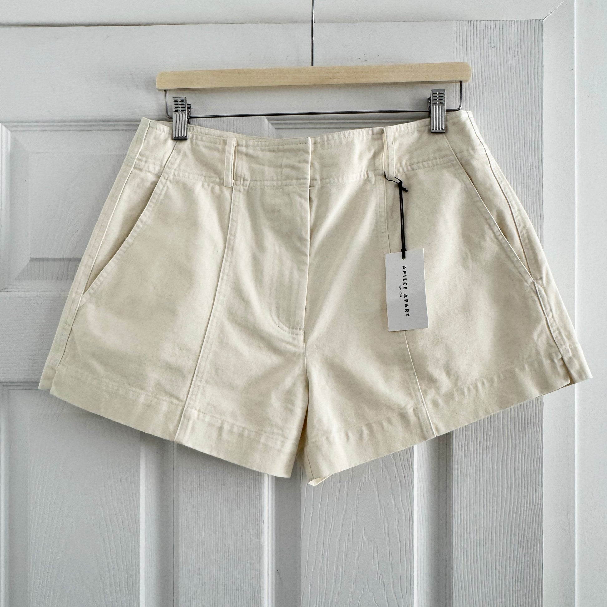 Apiece Apart "Veras" Shorts in Ivory, size 8. Fits true to size. Brand new with tags! Such a cute classic little short - perfect for vacay or summer in the city - matches with everything! Front zip with a hook and bar closure. 16.5 inches waistband, measured flat. 12 inch rise. 100% cotton. Currently retailing for $275USD (what like, $385CAD?), and selling here for $135CAD!
