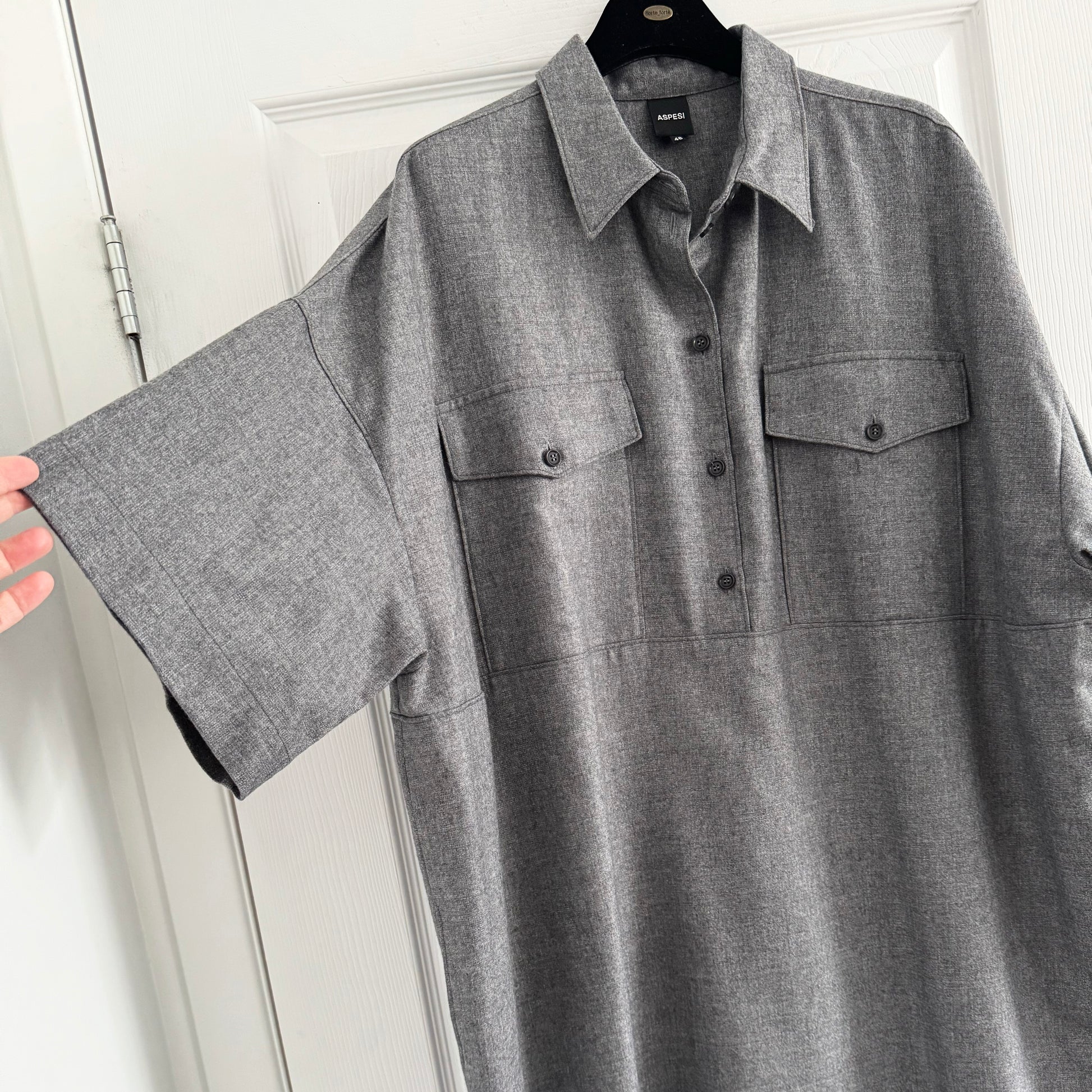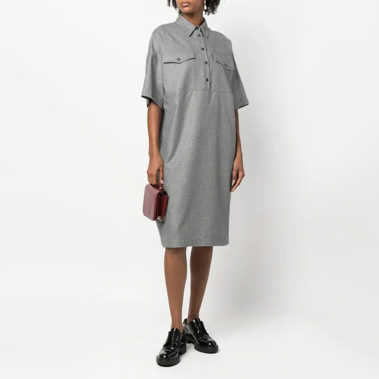 Aspesi Short Sleeve Wool Dress in Grey, size 46 (fits size 14)