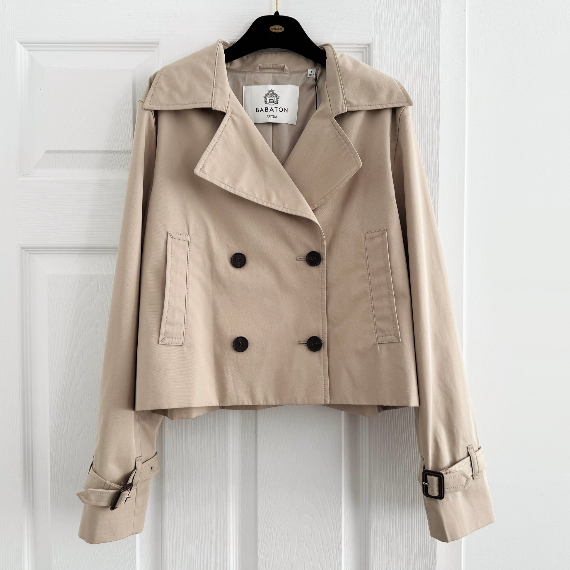 Babaton "Esquire" Short Trench Coat in Beige, size Small. Brand new with tags! Such a cute little transitional weather piece! 100% cotton. Originally $248CAD, and selling here for $145CAD!