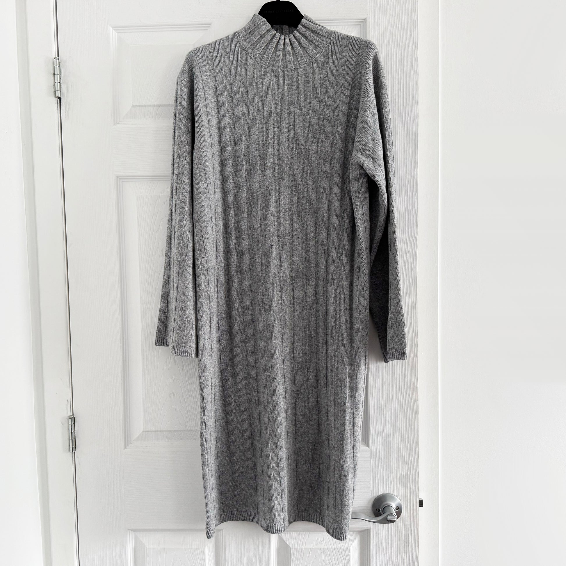 Barbour "Sophia" Ribbed Knit Dress in Grey, size Small. Fits true to size for a slouchy fit. Brand new with tags! A cozy dress for WFH, running errands, and being comfy when travelling. Pair with anything from boots to sneakers! 23 inches armpit to armpit. 40 inches in length. 55% wool, 45% cotton. Originally $225CAD, and selling here for $95CAD!