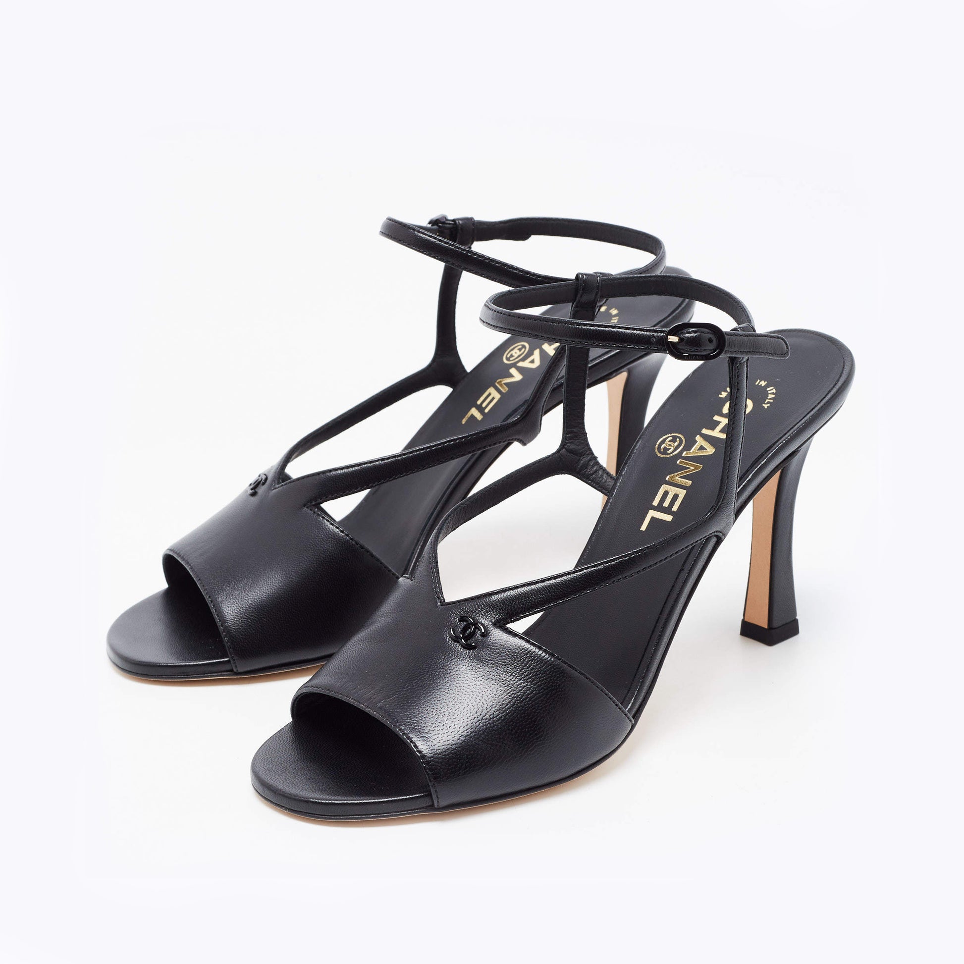 Chanel High Heel Leather Sandals in Black, size 41C