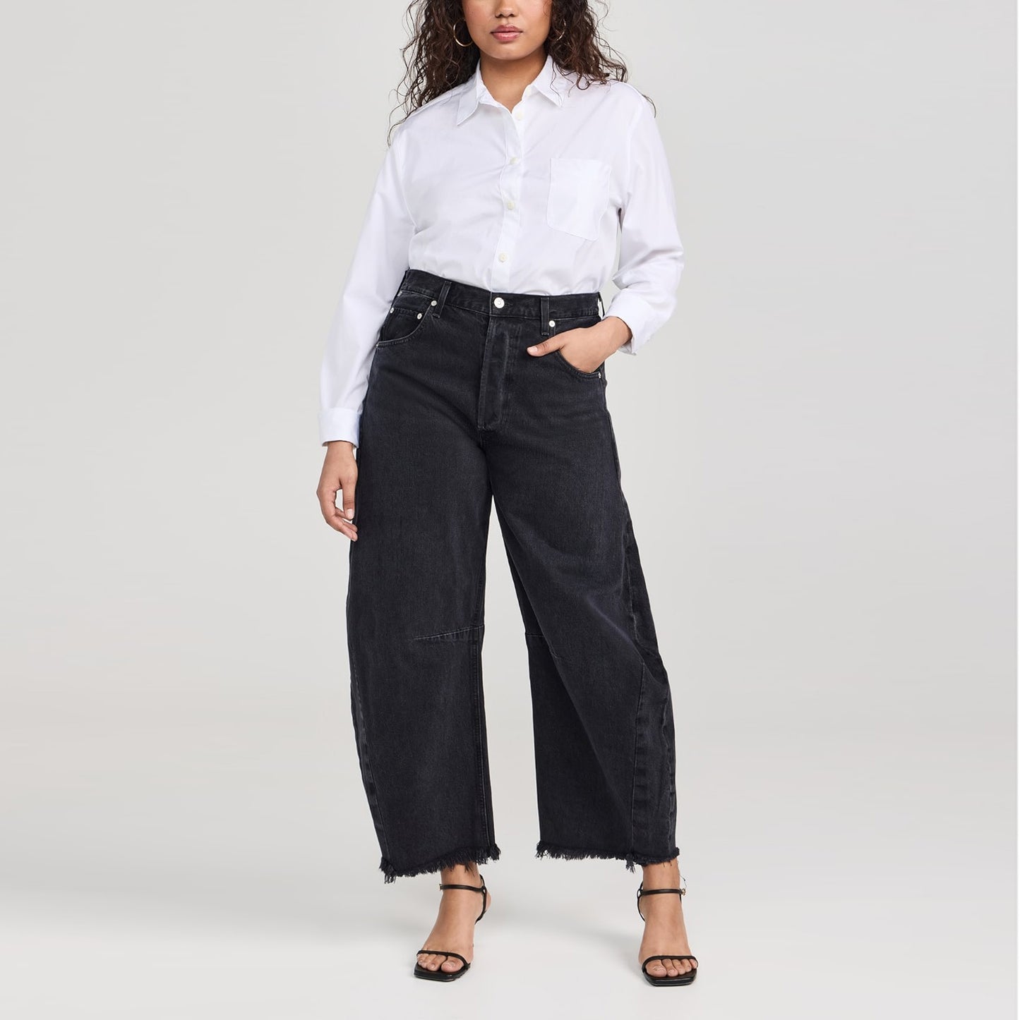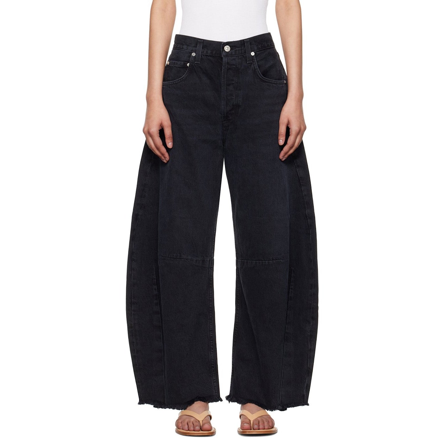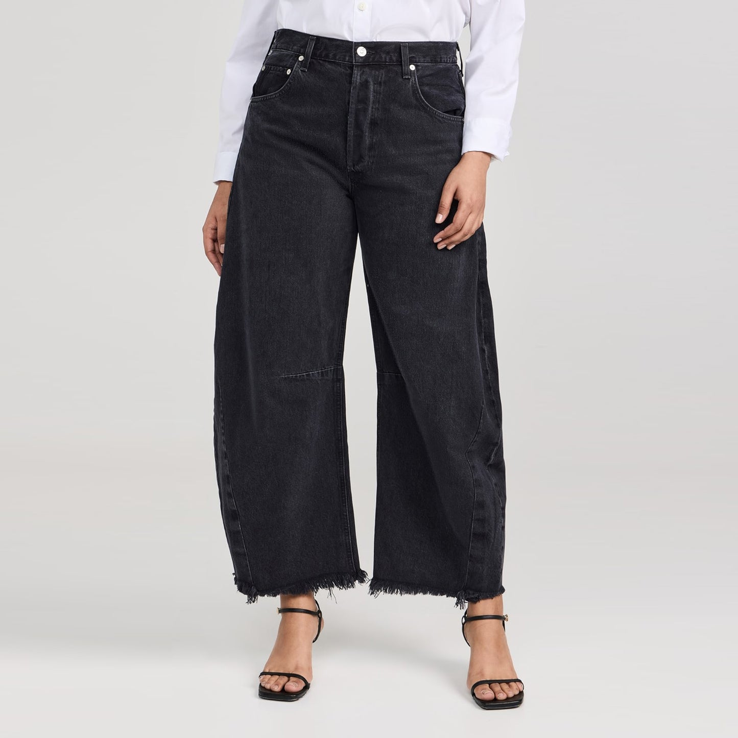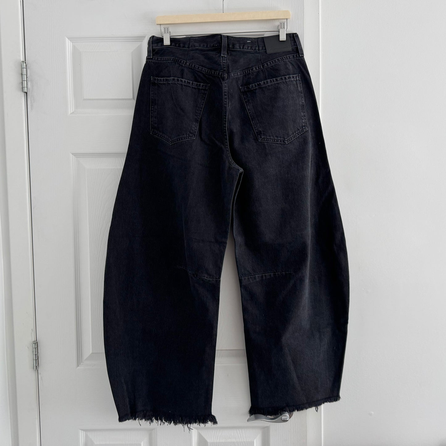 Citizens of Humanity "Horseshoe" Jean in Sonnet Black, size 29. Brand new with tags! An iconic silhouette - dramatic - but more importantly, comfortable! They're not for everyone but that's whats so great about them. Pair with anything from sandals to heels to a combat boot. Have fun with them! Frayed hem. Button fly. 34 inches waistband. 13.5 inch rise. 27 inch rise. 100% cotton. Originally $450CAD, and selling here for $235CAD!