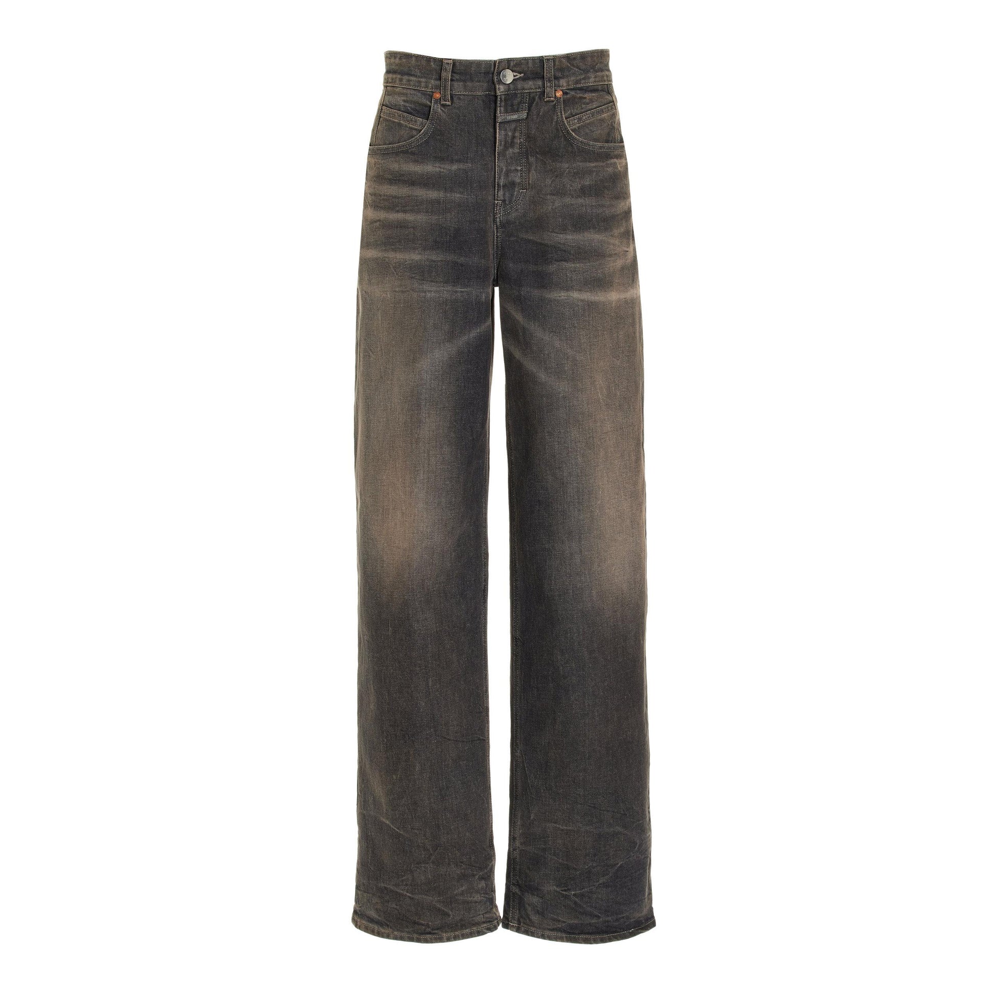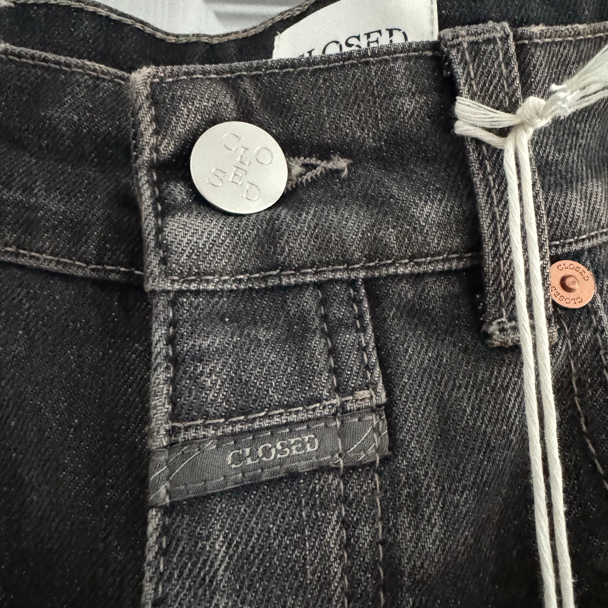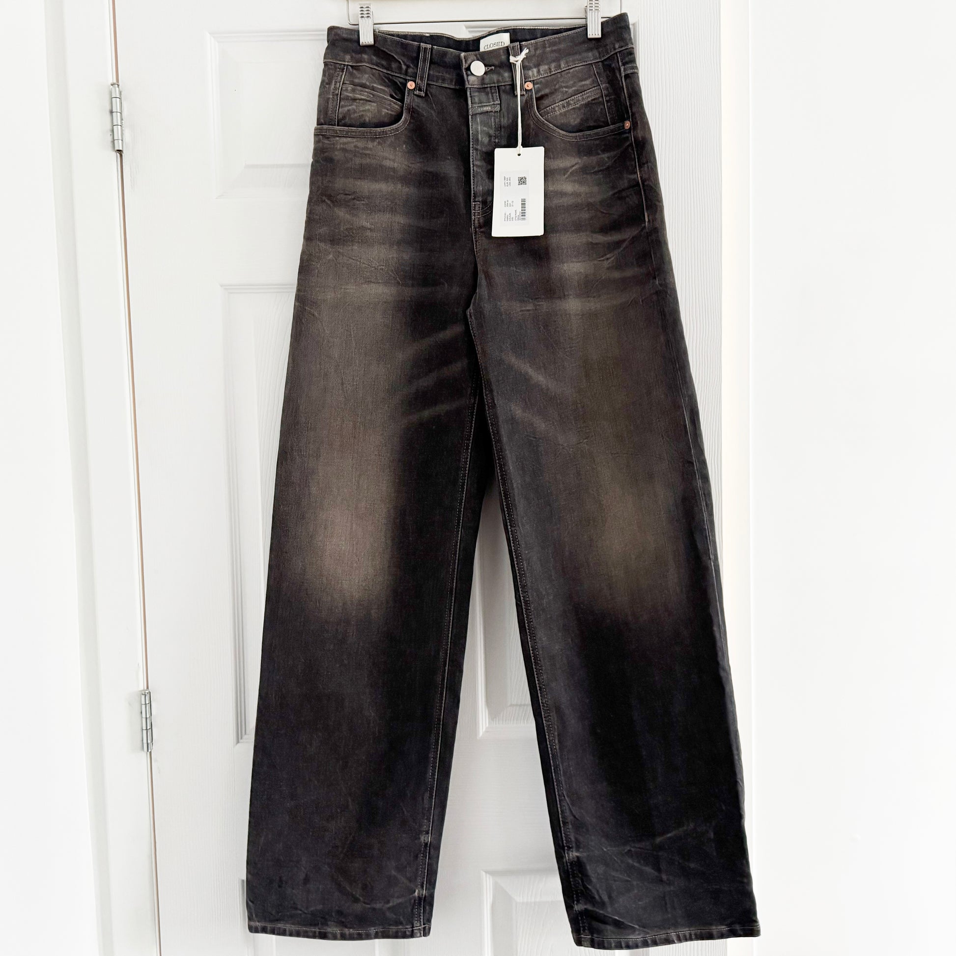 CLOSED OFFICIAL "Nikka" Jeans in Dark Grey, size 27. Fits true to size. Brand new with tags! A beautiful dark grey denim with an aged type of finish that adds a lot of texture! It's low key serving Margiela vibes in a way that I think is really beautiful. A very cool jean for everyday wear - and great if you're tall! Button fly. 32 inches actual waistband. 11.5 inch rise. 32.5 inch inseam. 99% cotton, 1% elastane. Made in Italy. Originally like $550CAD, and selling here for $185CAD!