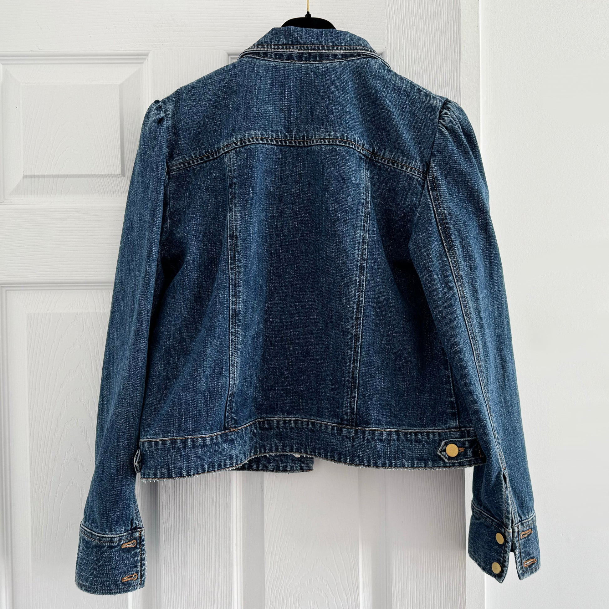 CO Denim Jacket, size Large (fits like a slim size medium - the arms are slim - like a US size 6 I'd say?). Probably one of the most beautiful denim jackets you'll EVER see - this luxury American label sources the best fabrics out there, and the denim is no exception. Structured, like everything else they make, this elevates a denim jacket to a designer level that will spoil you. Pair with a tailored wide leg pant, a fitted knit midi skirt, or a bermuda short and heels. This label tends to be quite minimal, and architectural, so I think of styling it along those lines, but in reality, a piece doesn't get more versatile than this! 19 inches armpit to armpit. 22 inches in length. 100% cotton. In excellent condition. Originally around $900CAD, and selling here for $195CAD!