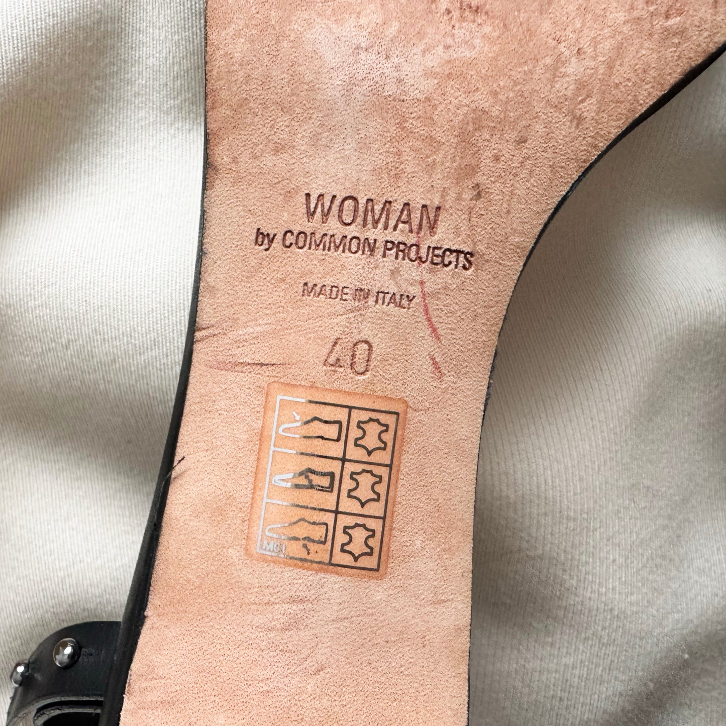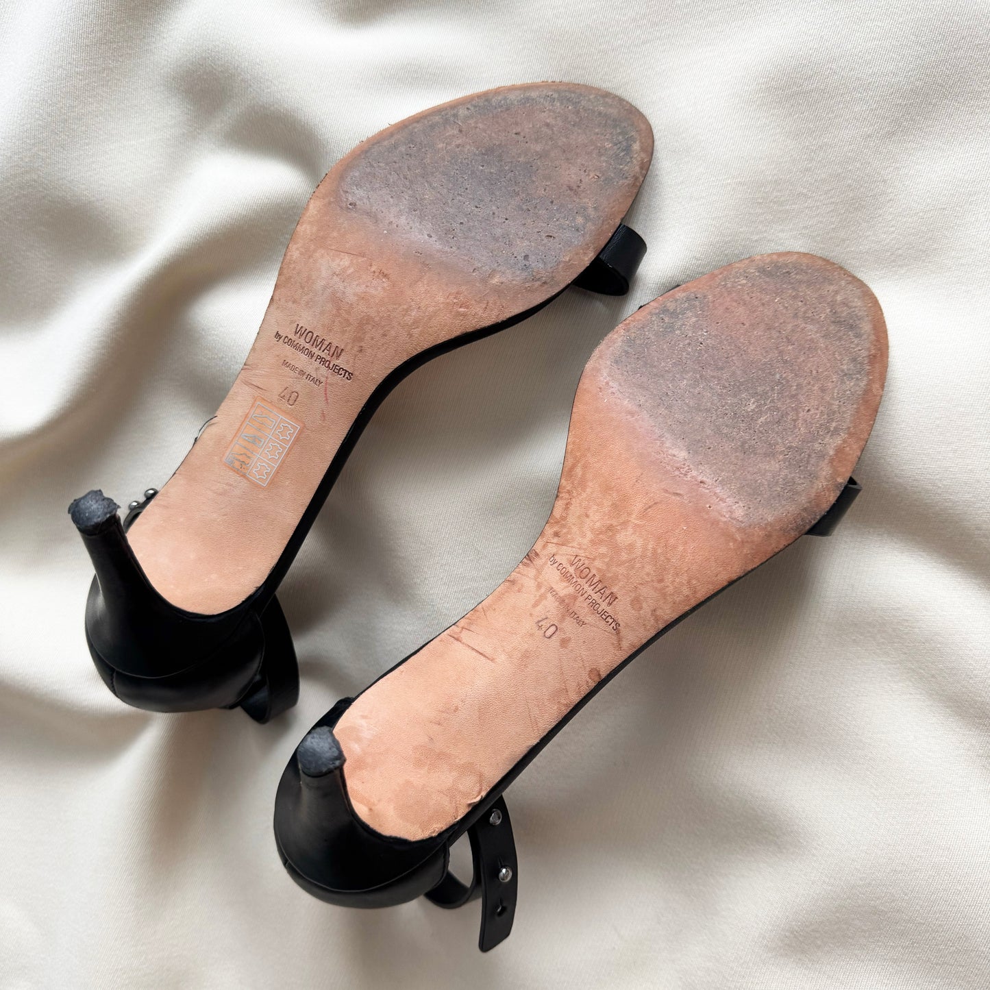 Common Projects Minimalist Black Sandals with Ankle Strap, size 40