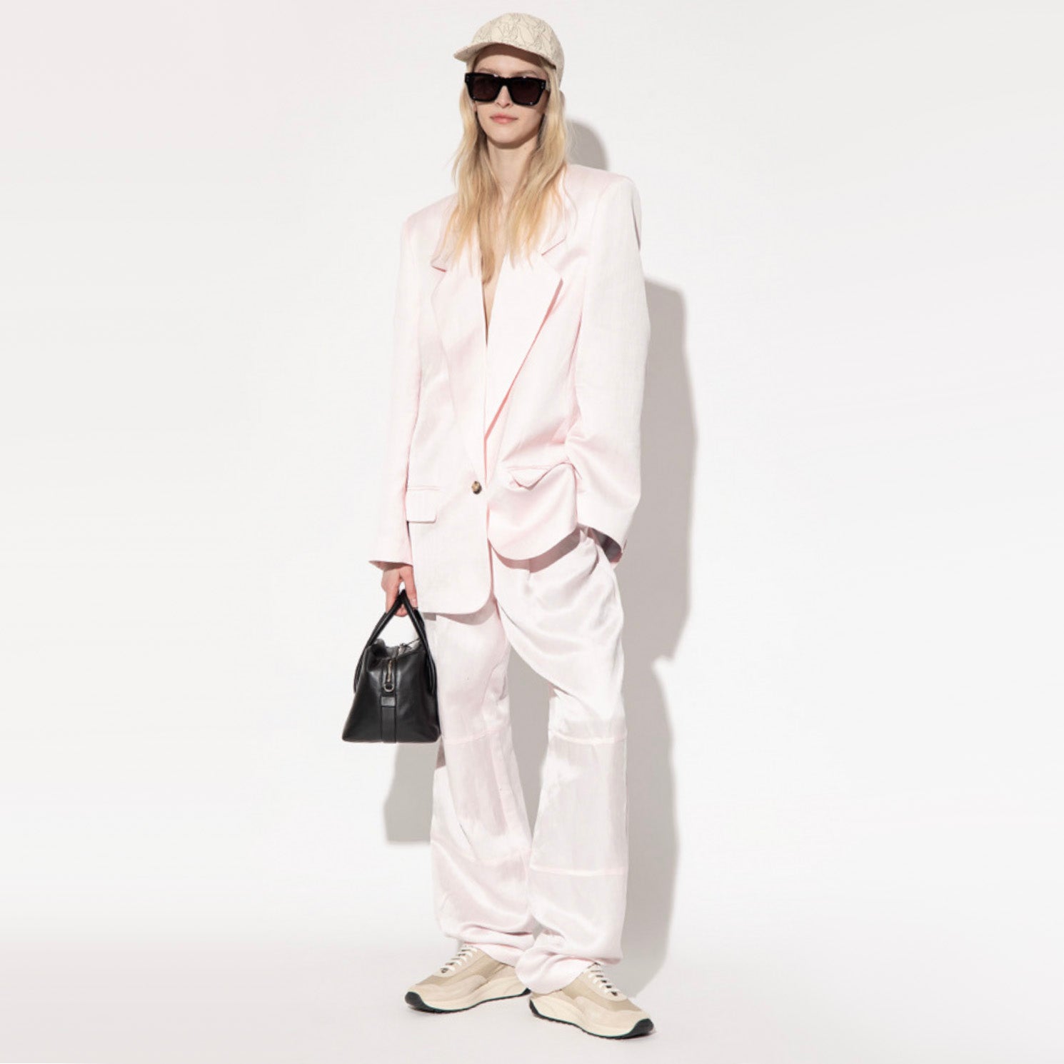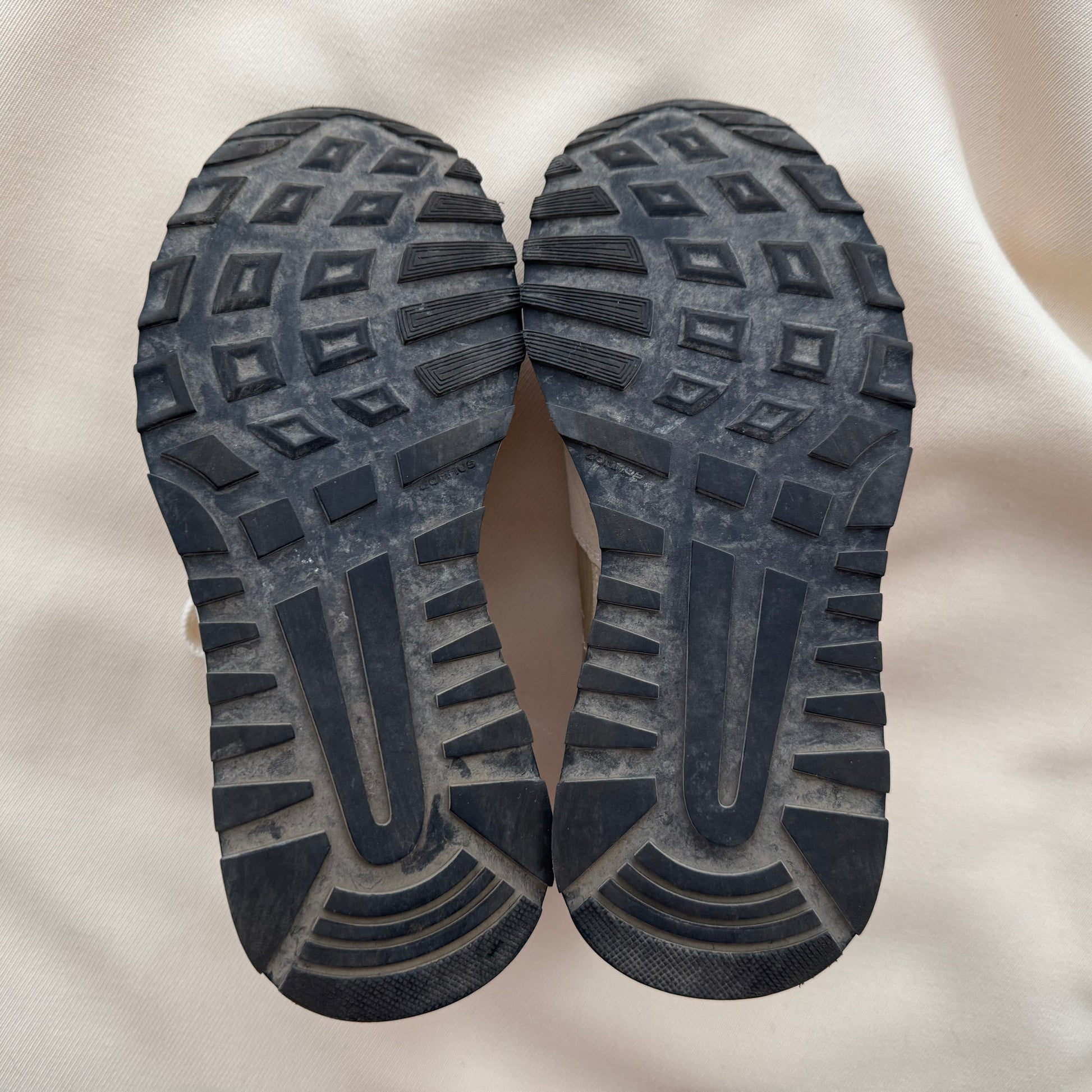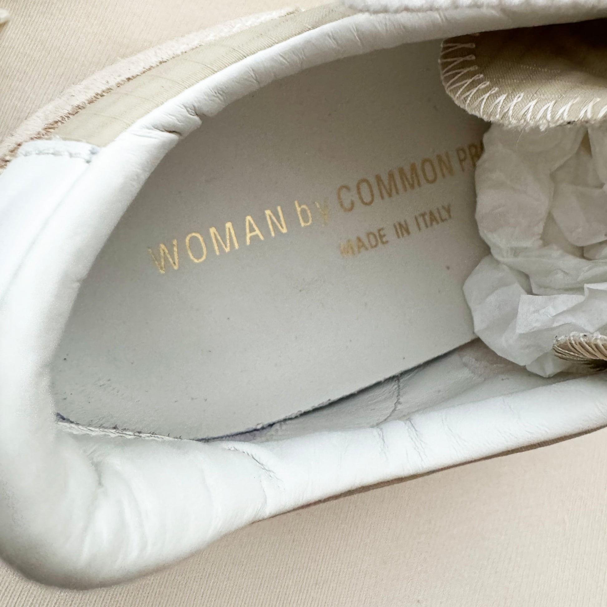 Common Projects Track 80 Sneaker in Tan, size 35. Fits a little comfy to size, good for a 5/5.5. Such an easy everyday sneaker - neutral and super easy to match. I LOVE the retro sport vibes!! Wear with super wide leg jeans, with little white socks and dresses, or little shorts and an oversize blazer - this model looks amazing. Suede and fabric upper. Rubber soles with tread. Worn like once, maybe twice? Comes with original box. Originally $780CAD, and selling here for $235CAD!