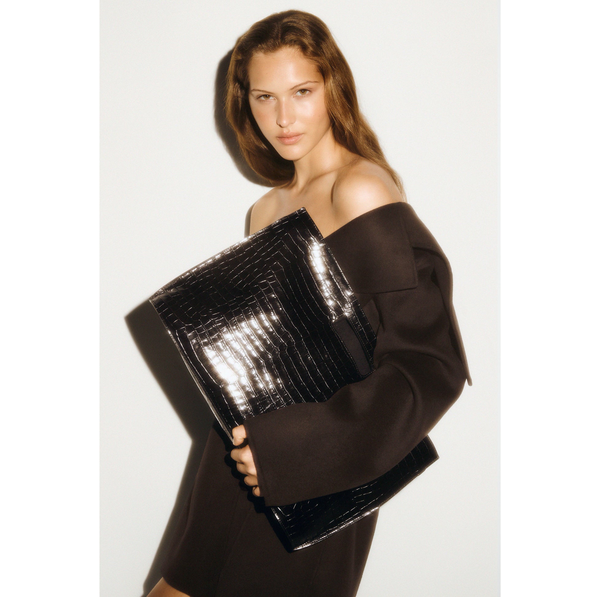 COS "Folio Oversized" Bag in Croc-Effect Leather in Brown