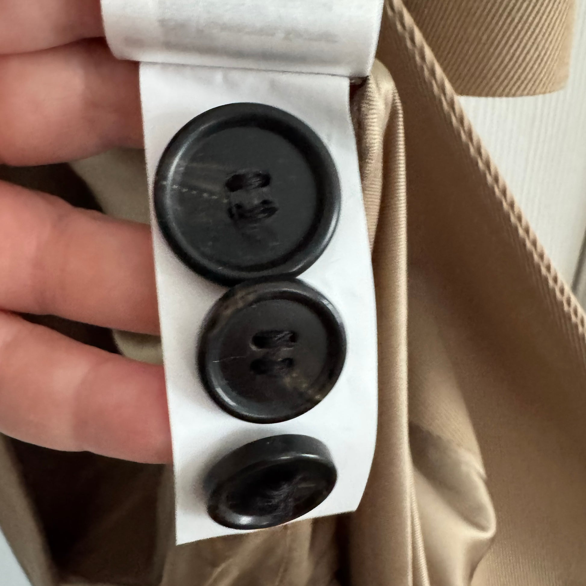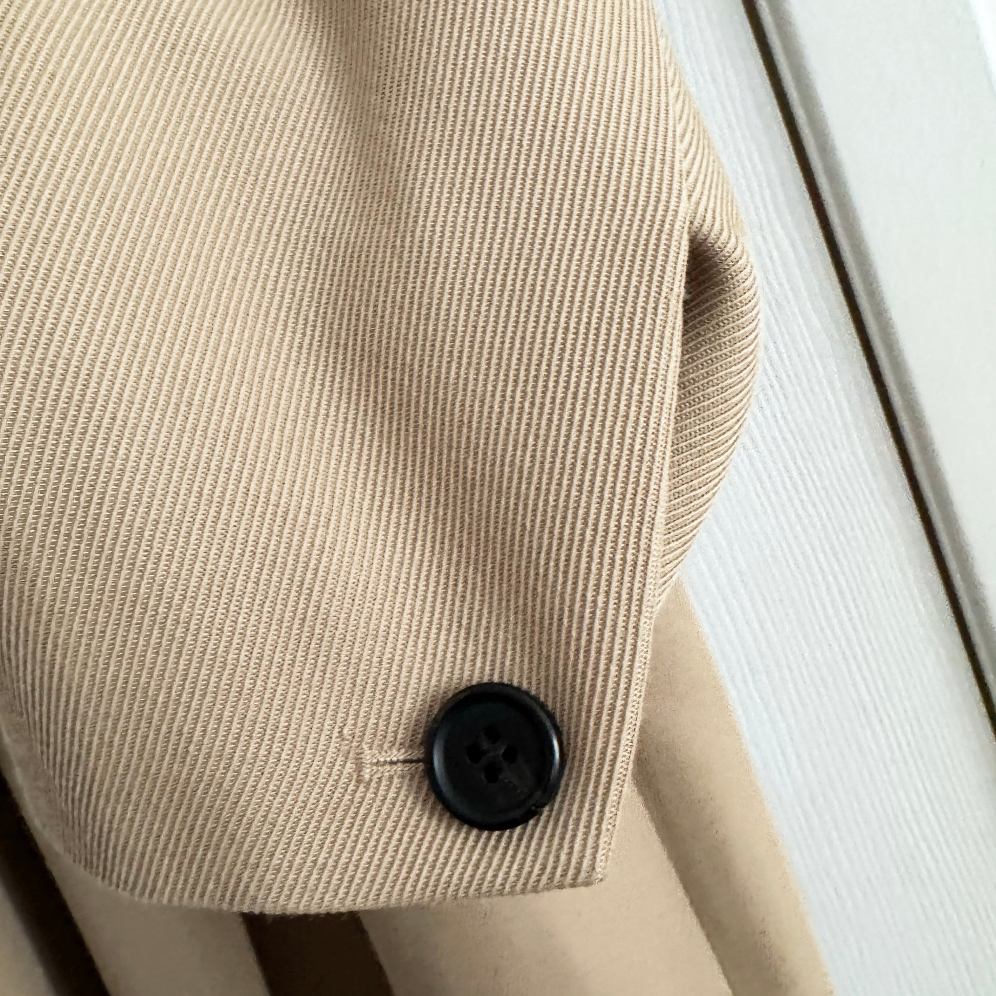COS Trapeze Wool-Blend Jacket in Beige, size 6. Fits true to size for a slouchy fit. Like a trench coat, but more fluid, more architectural - done in a wool/poly blend twill fabric that moves beautifully. 42 inches in length. About 25 inches in width, cut fairly straight down. 60% RWS Wool, 40% Recycled polyester. Lining: 100% Viscose. In excellent condition. Currently selling full price on the brand's website (if you need other sizes!) for $485CAD, and selling here for $215CAD!