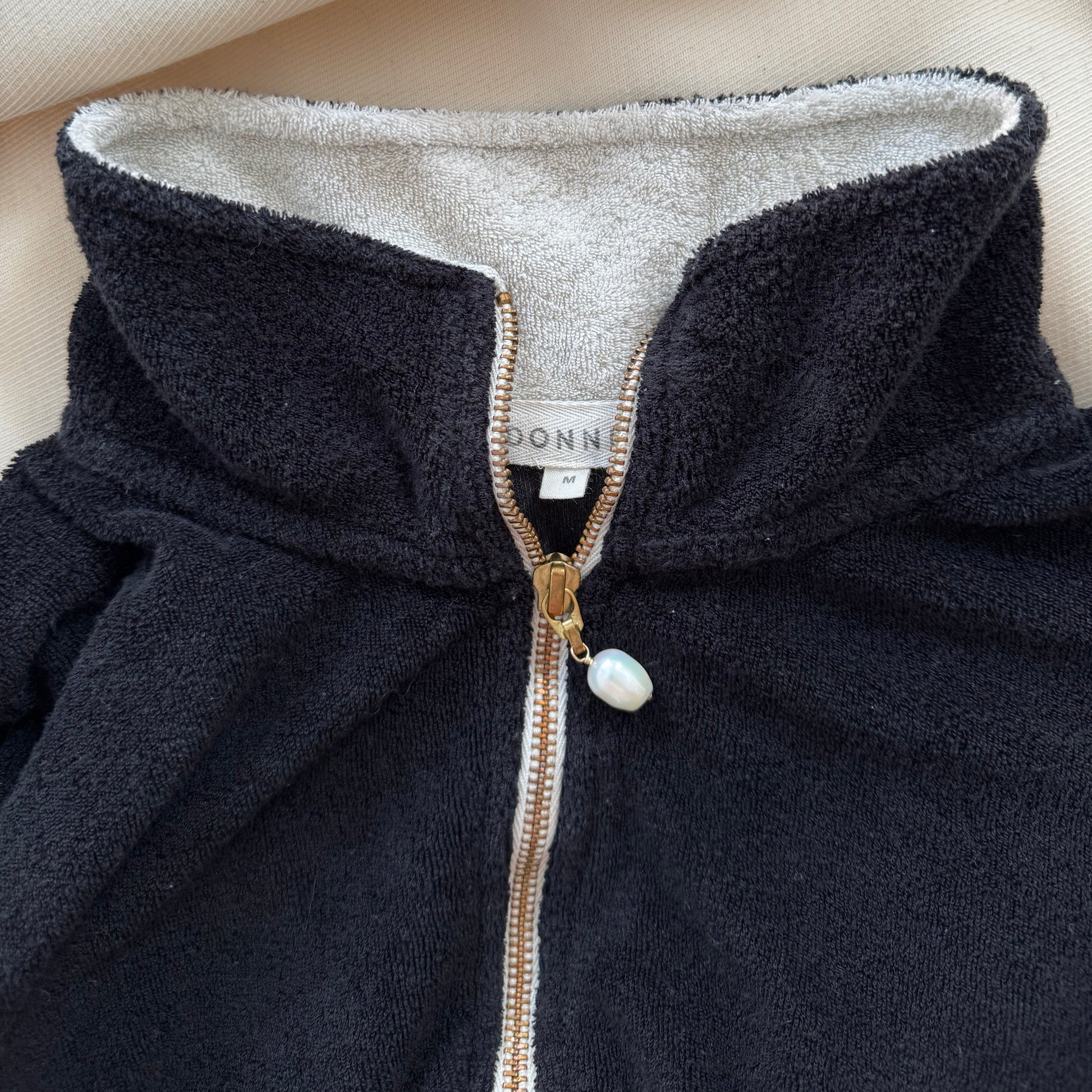 Donni Striped Velour Top, size Medium (fits S/M). Such a cute retro sport vibe - but with a modern feel that's cute with jeans for casual days, but could be really cool with a dressier pant for an elevated casual dinner outfit as well. 21 inches armpit to armpit (which you don't want to be too tight), and 23 inches in length. 85% cotton, 15% polyester. Lightly worn and in very good condition. Originally over $400CAD, and selling here for $95CAD!