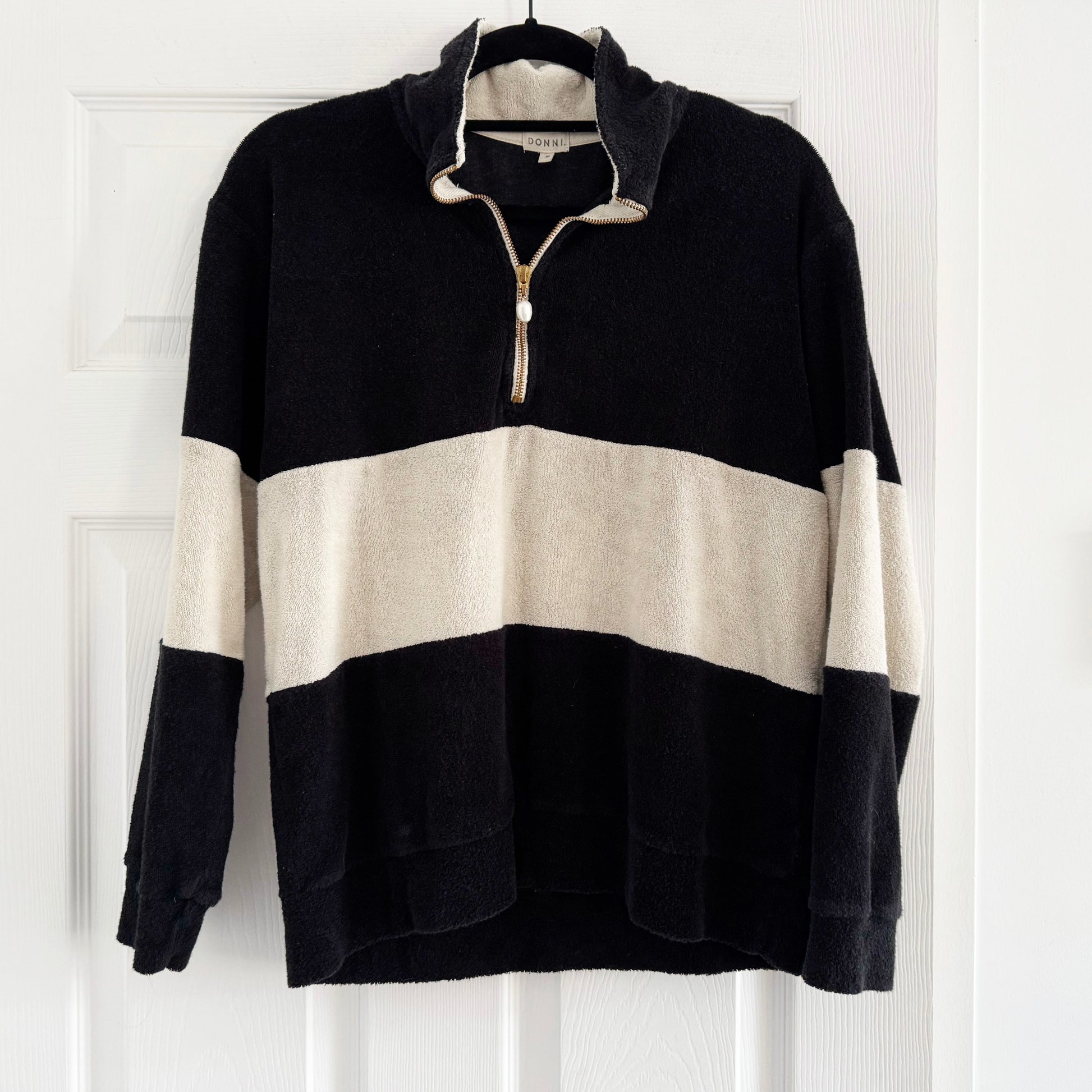 Donni Striped Velour Top in Black and Ivory, size Medium (fits S/M)