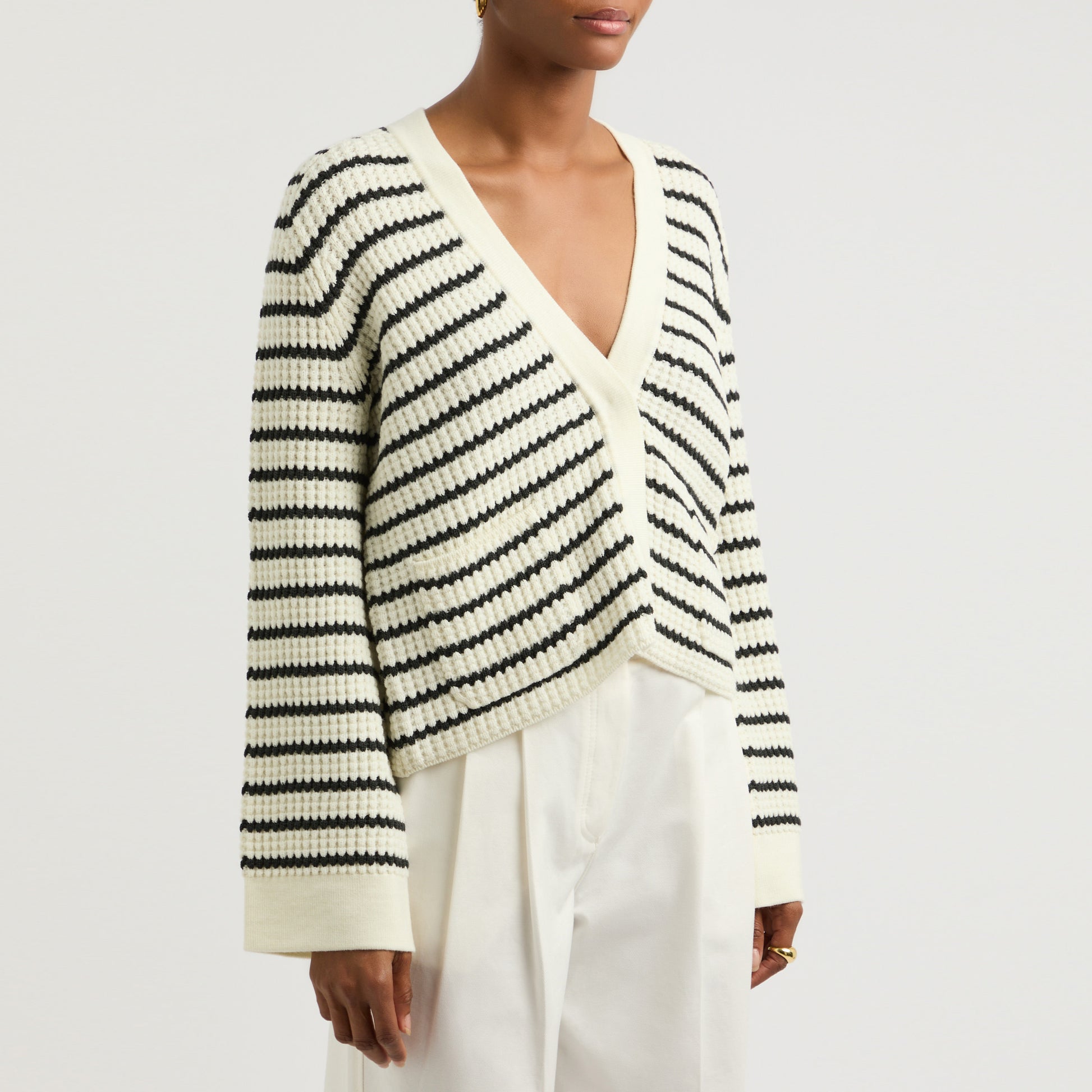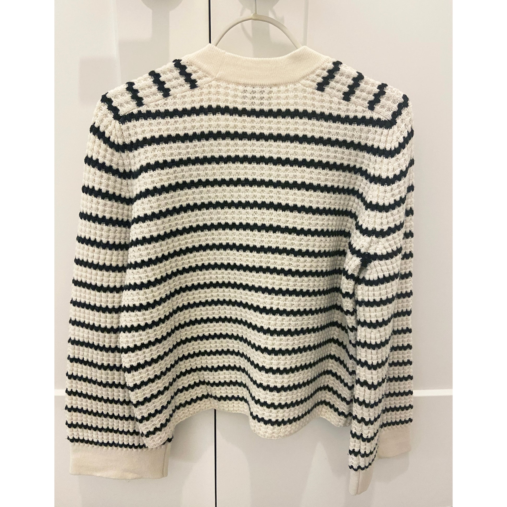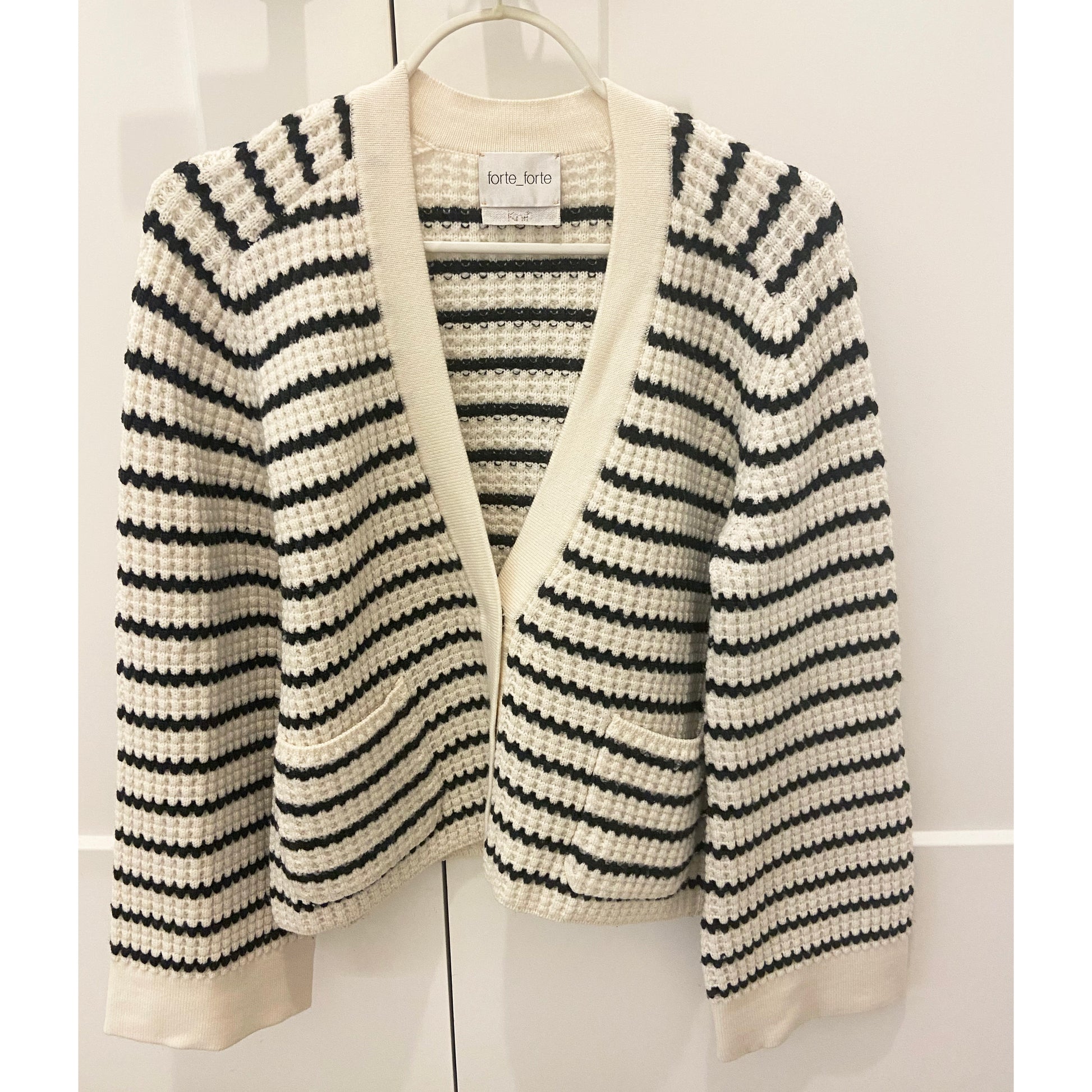 Forte_Forte Striped Wool Cardigan, size "0" (fits XS/S). A beautiful piece for any season - stripes are so chic! This cropped style is perfect with a higher waisted loose trouser. 100% wool. In excellent condition - worn only once. Originally between $750 and $850CAD, depending on where you shopped, and selling here for $325CAD!