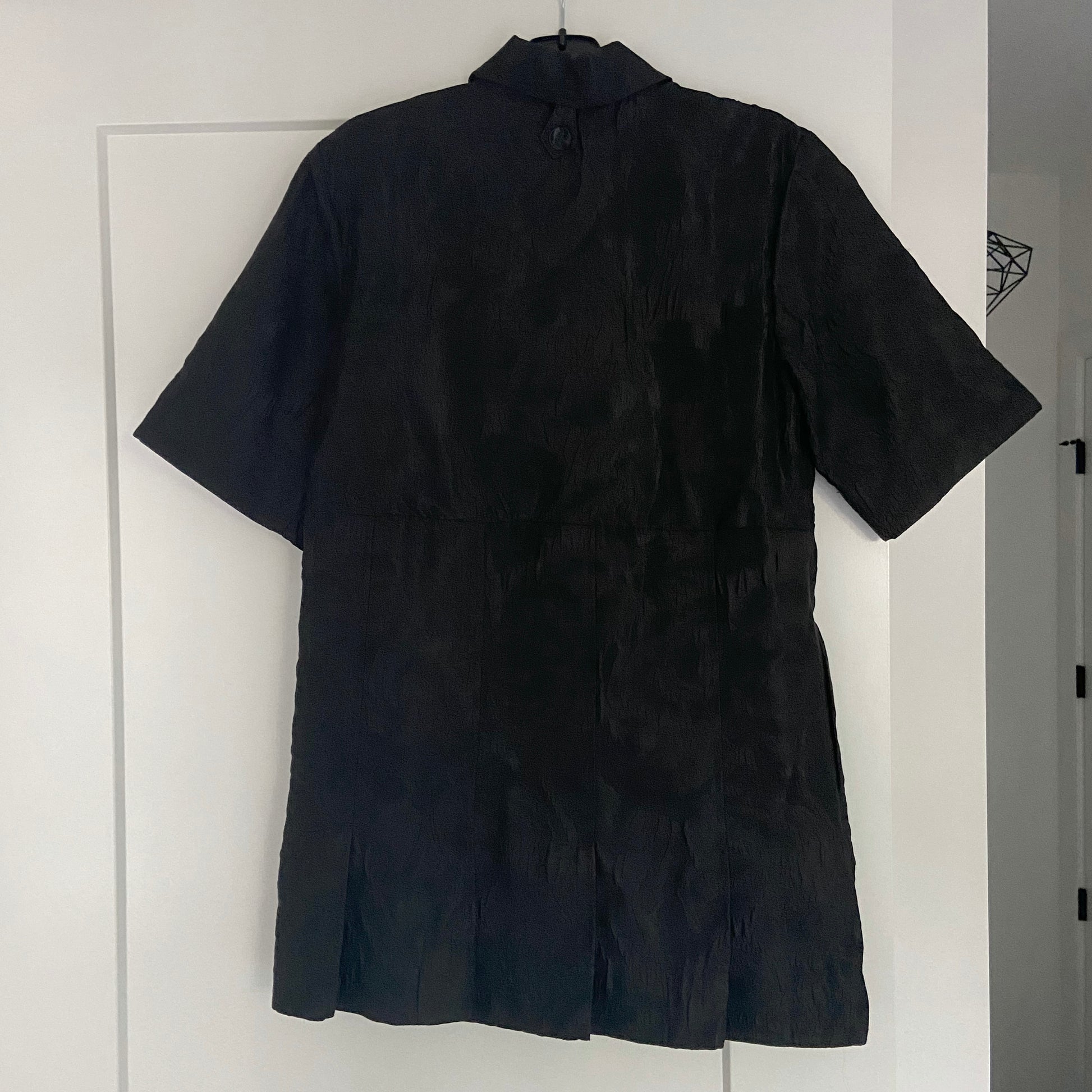 Ganni Textured Jacquard Mini Dress in Black, size 34. Fits like a size small. Very cute - very playful - what Ganni is best known for! This little jacquard dress with pleated hemline detail works well for day or evening, layered or alone, in any season! Very pretty AND super versatile. Measuring 18 inches armpit to armpit, and 32 inches in length. 52% recycled polyester, 30% polyester, 18% polyamide. In excellent condition. Originally $545CAD, and selling here for $175CAD!