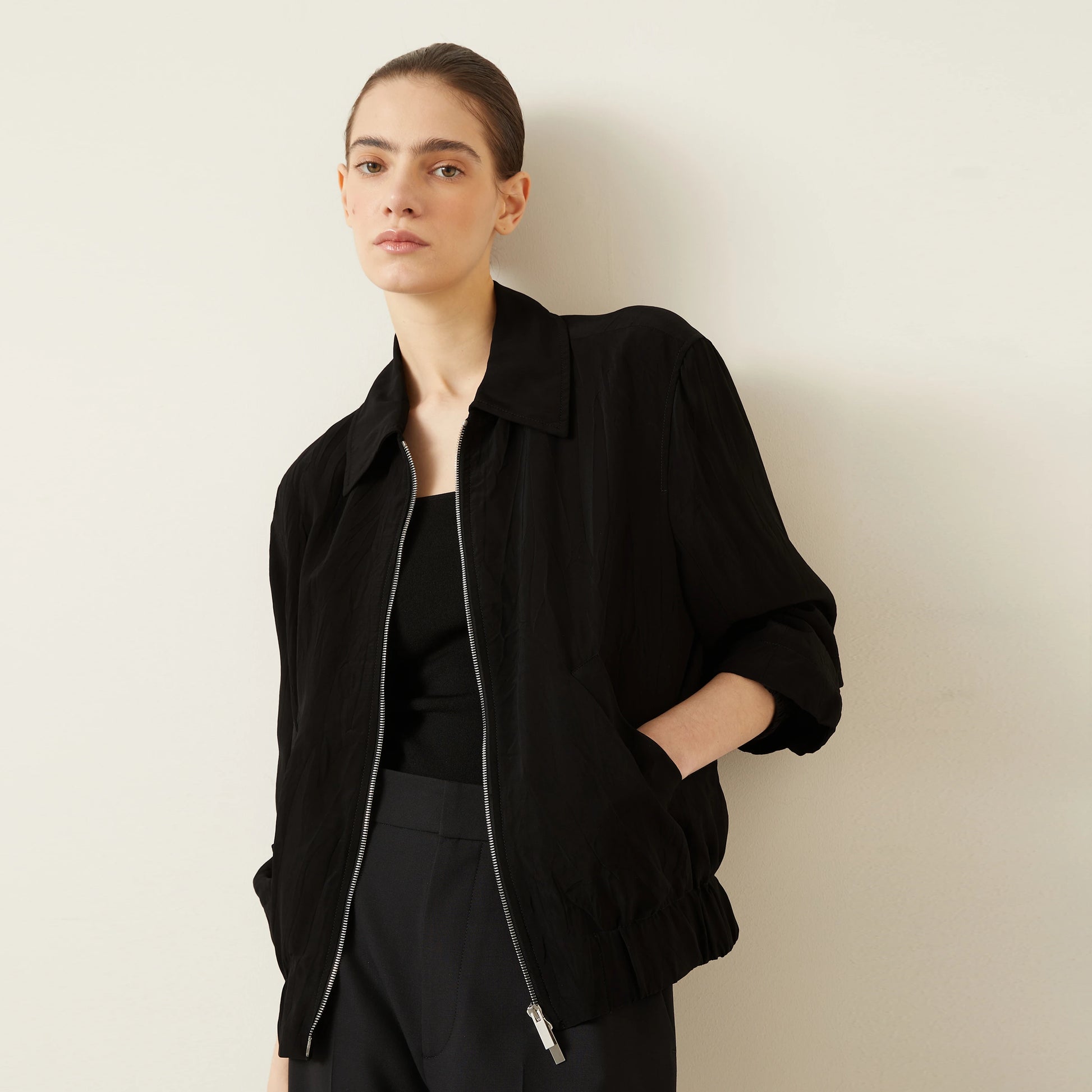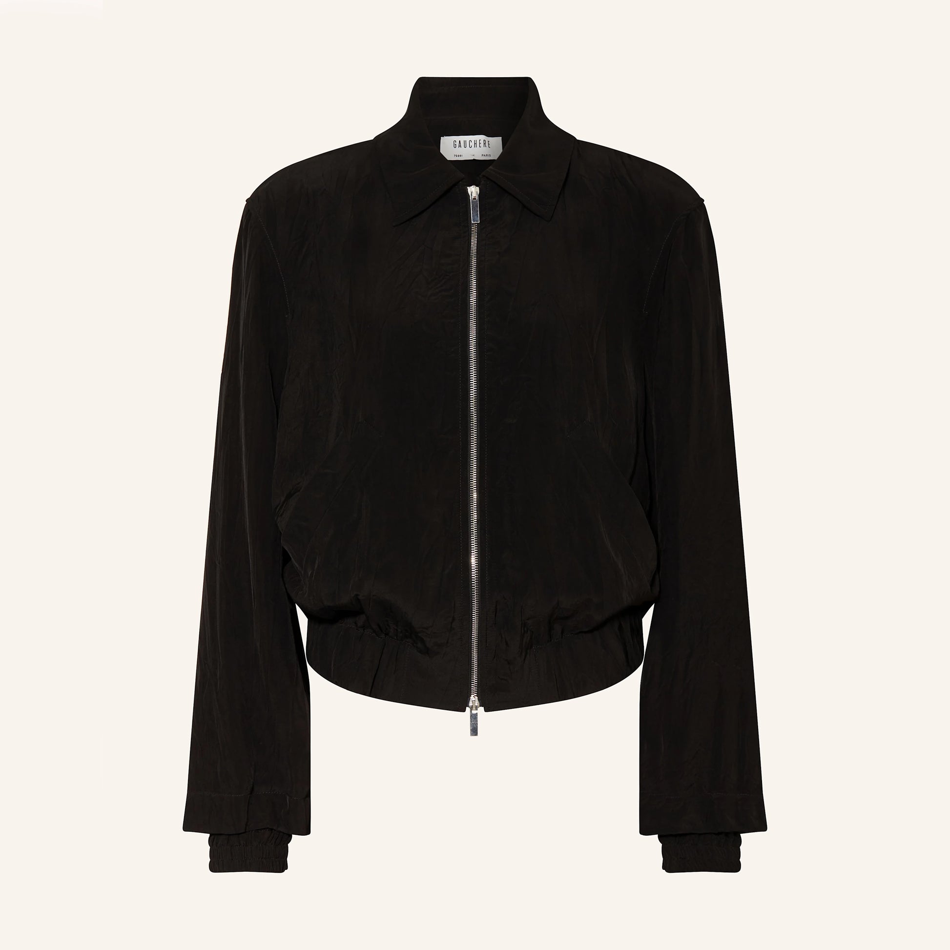 Gauchere Bomber Jacket in Black, size 42. Fits like about a size 8. Brand new with tags! A beautiful wardrobe staple - the bomber jacket - elevated by this French label. It's lightweight, with a double zipper, and is absolutely perfect for transitional temps and travelling alike. Dress it up or down, with anything in your closet from jeans to skirts. 23 inches in length. 23 inches armpit to armpit. 100% polyester. Originally $1450CAD, and selling here for $465CAD!