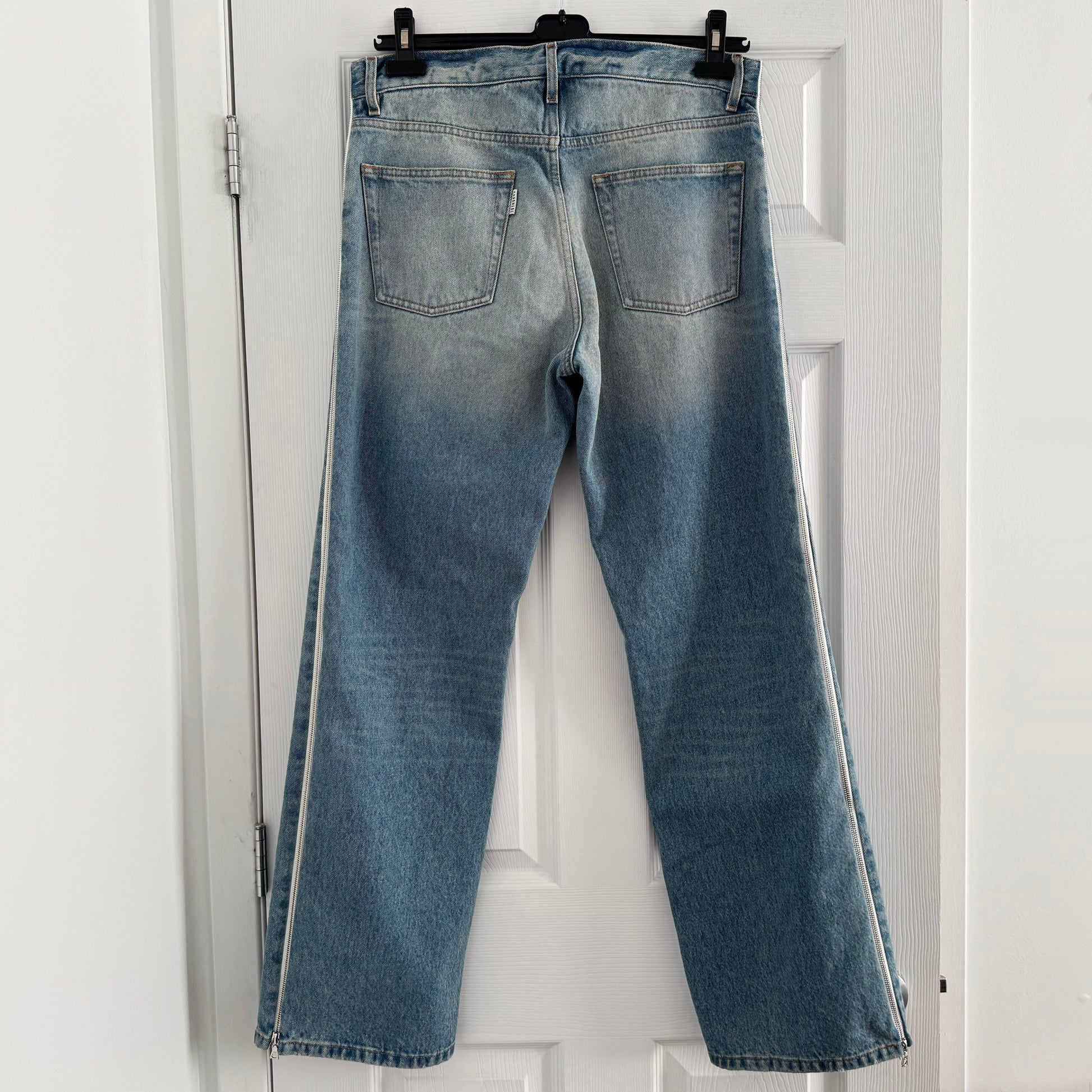 Gauchere Side Zip Jeans in Blue, size 40. Fits like a slouchy size 29 in jeans. SUCH a cool jean - perfect for the girl who wears a lot of denim and wants something a little bit out of the ordinary. The quality of the denim and the zipper is very good - something like this is definitely best done by a luxury brand. This Belgian brand makes incredible stuff - definitely worth checking them out if you don't know them already! These unzip up from the bottom, if you choose to wear them partially unzipped, you can, but you don't have to (it could also be kinda handy if you want to wear a bulkier boot underneath them too actually?). 11 inch rise. 32 inches inseam (these cannot be easily hemmed, so ideal if this length suits you). 35 inches actual waistband, but take that with a grain of salt as these are quite a straight cut in the hip, and the waistband is meant to be kinda loose and low slung. 100% cotton. In excellent condition. Originally $800CAD, and selling here for $165CAD!