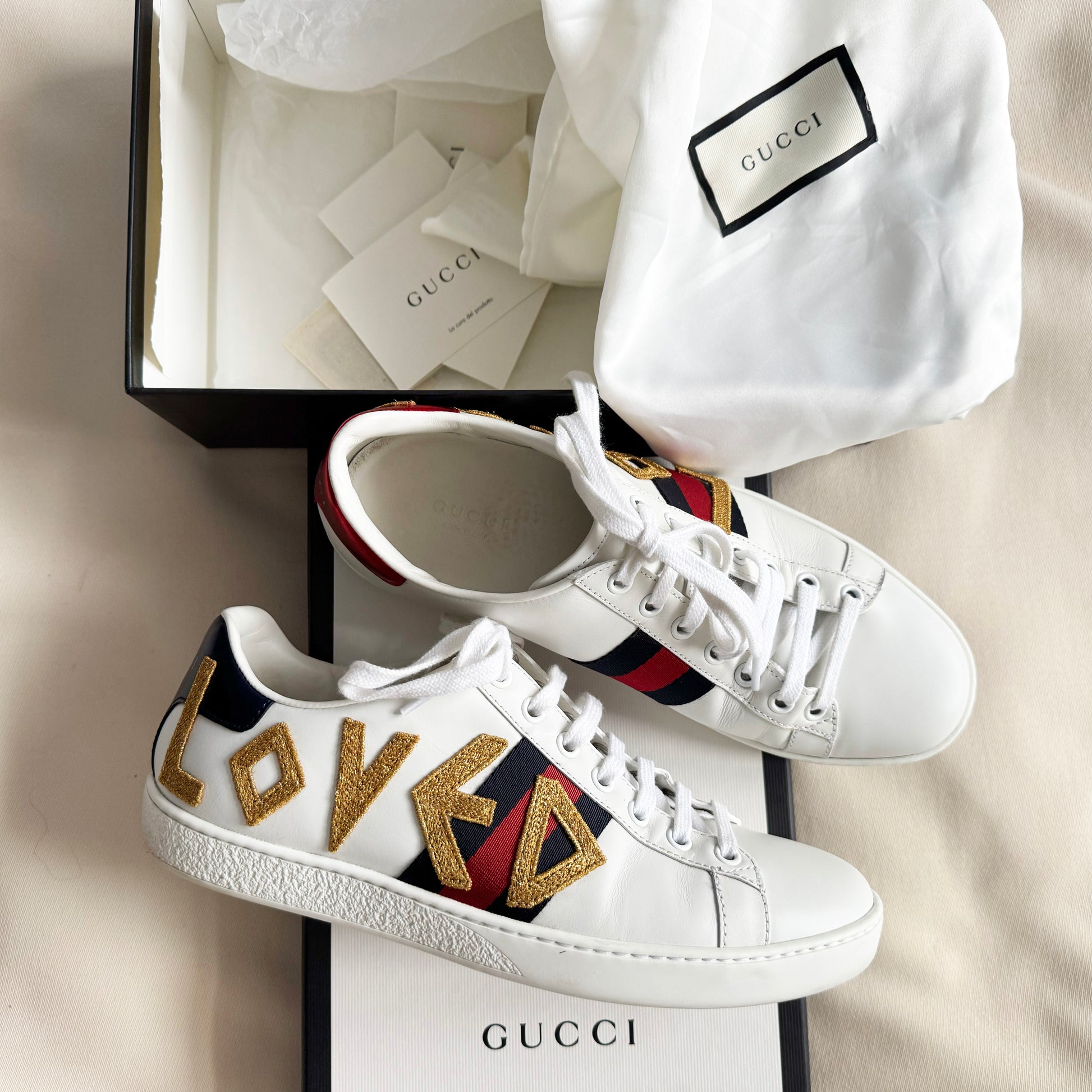 Gucci "Ace" Loved Sneakers in White, size 38 (Fits roomy, like an 8.5)