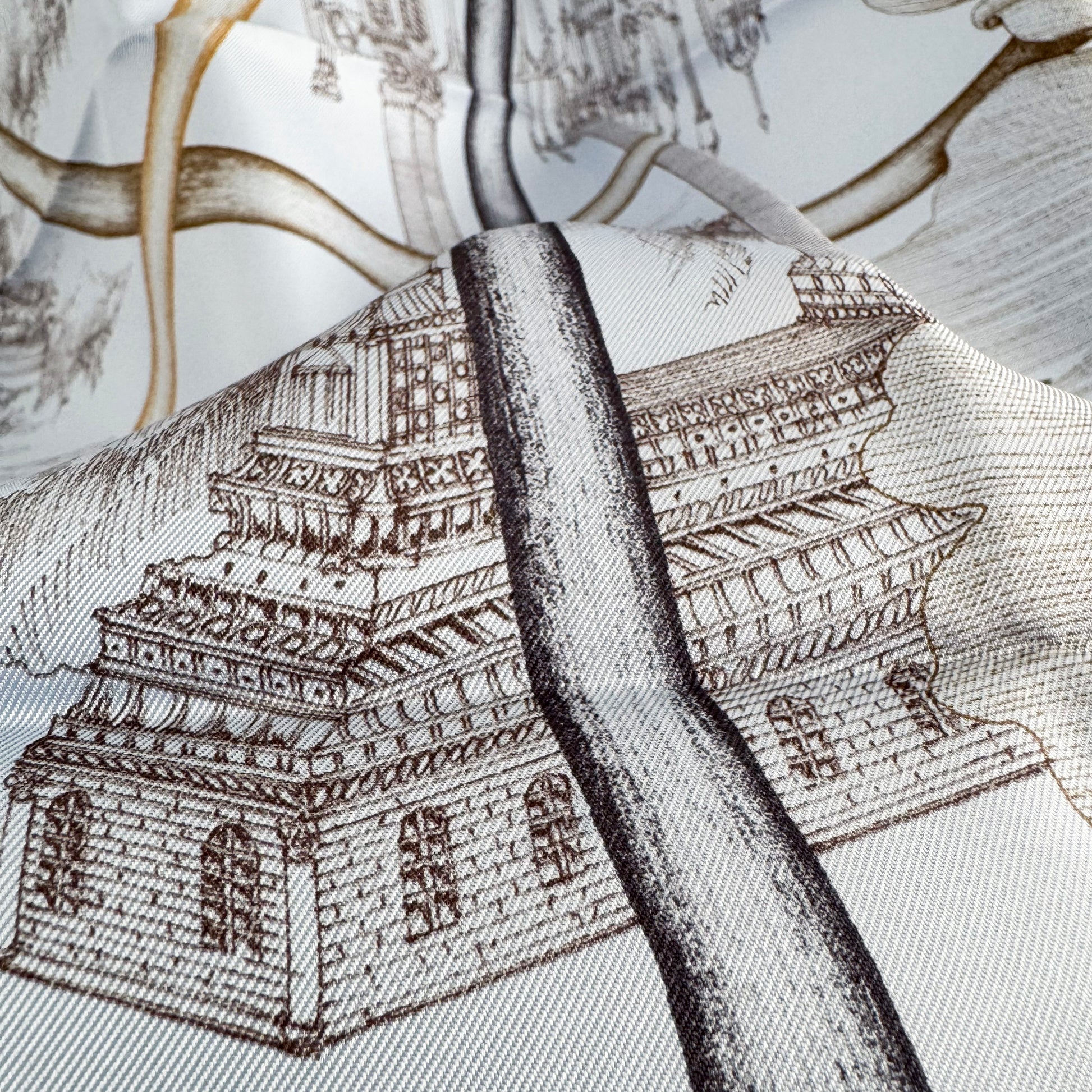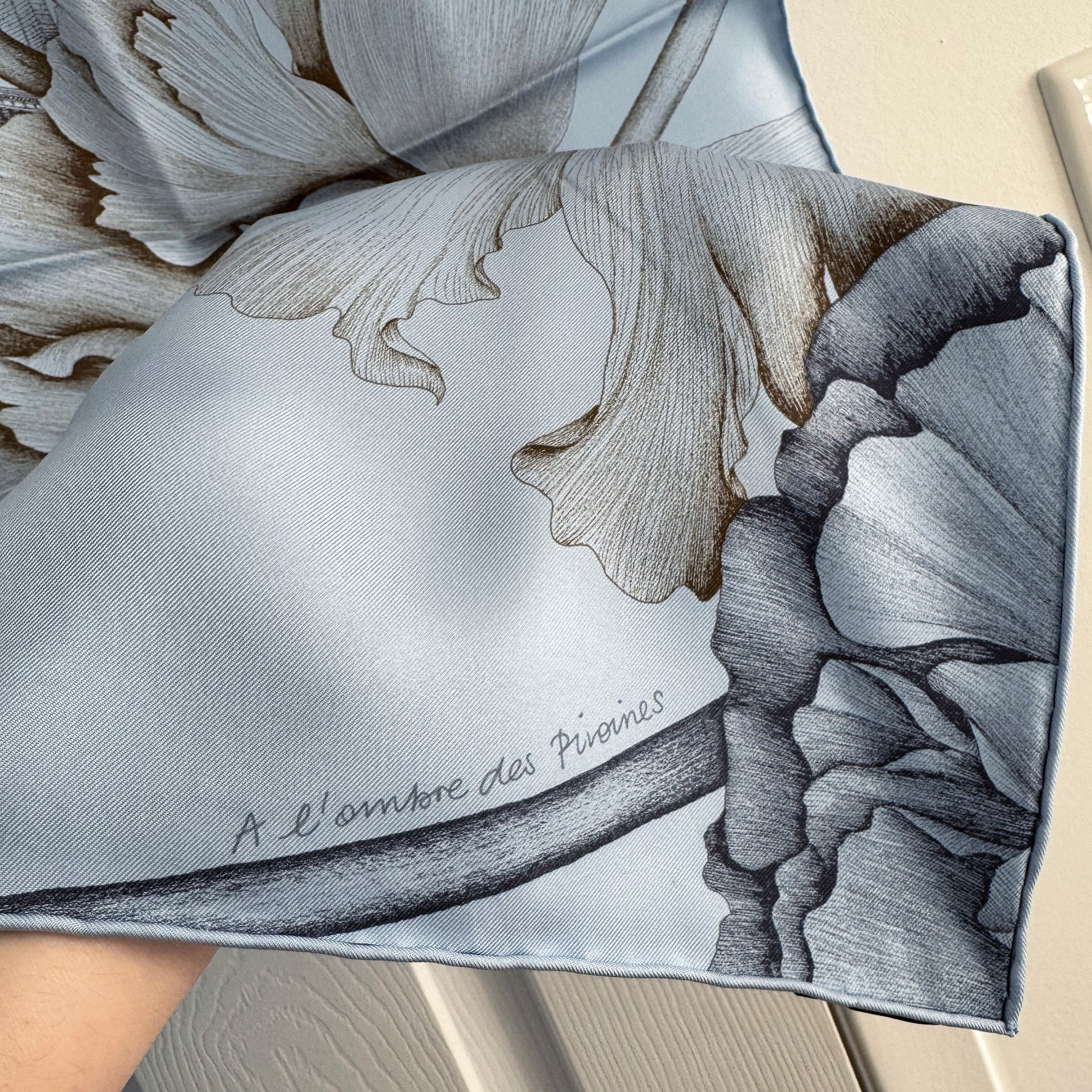 Hermes "A L’Ombre des Pivoines" 90cm Silk Scarf in Blue