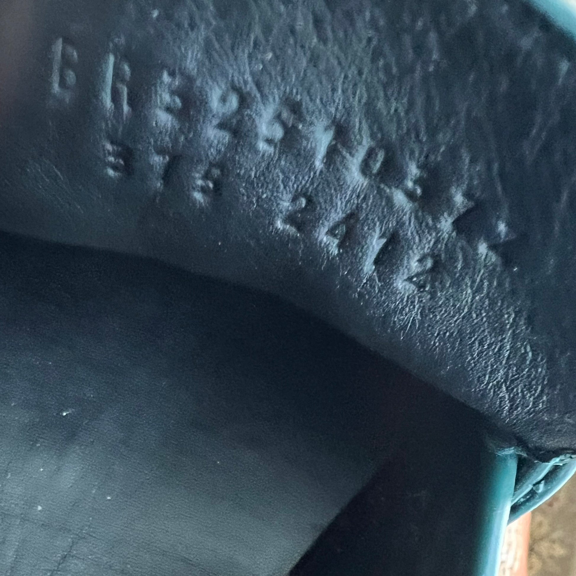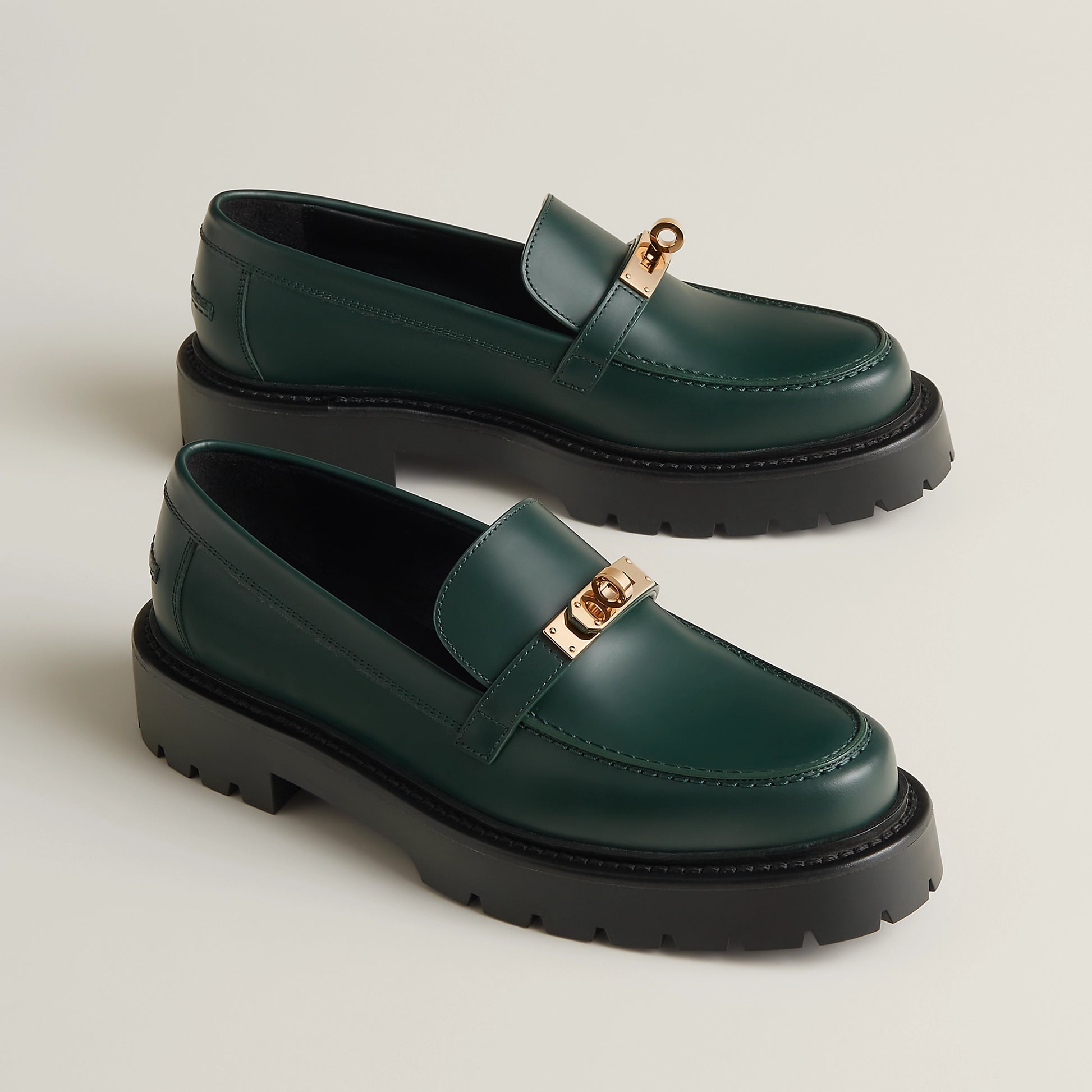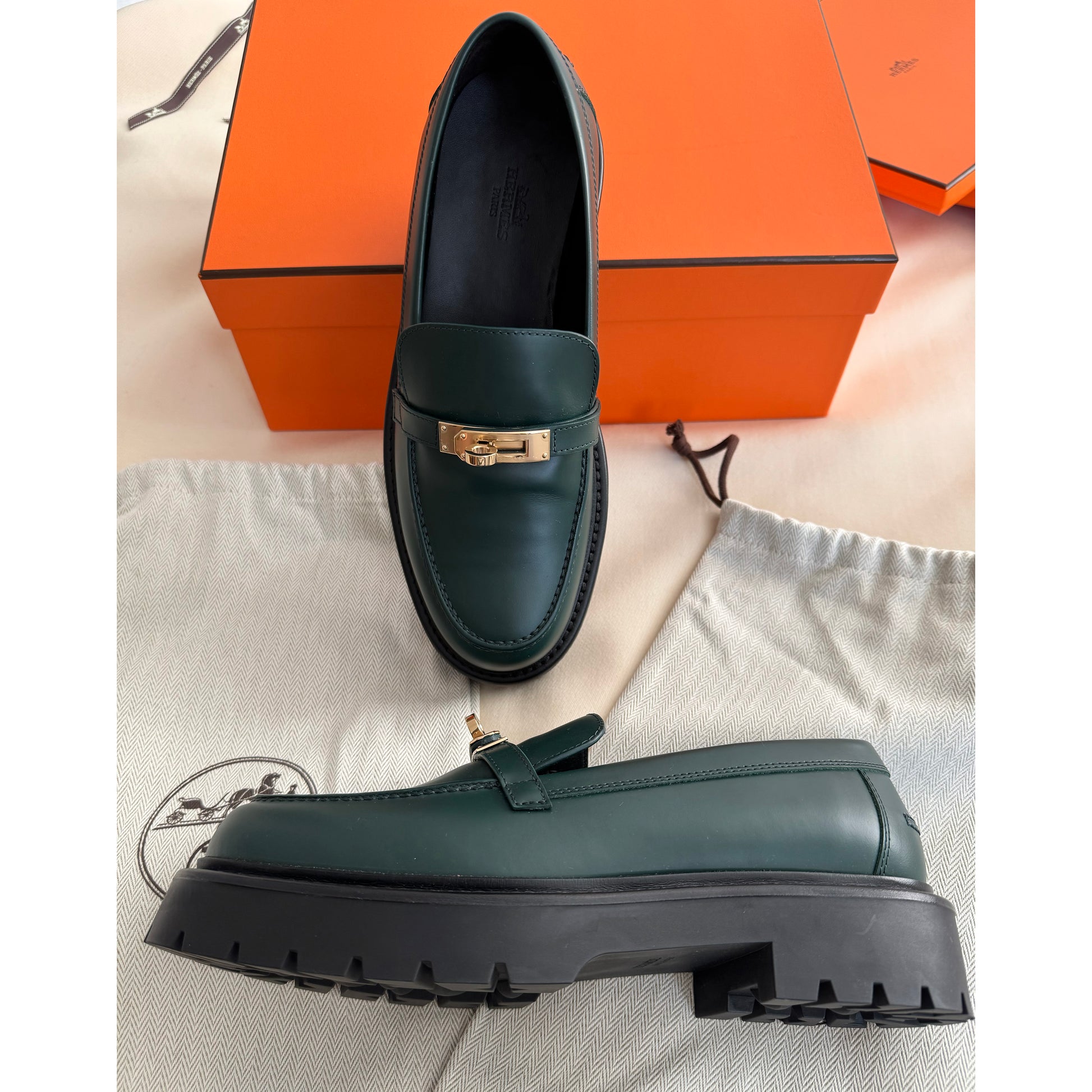 Hermes "Icone" Loafers in Green, size 37.5. Fits true to size for the brand's loafers - but if you're used to French shoe sizing, then more like a 38. Such a GORGEOUS loafer for the season. I love how the colour is a little unexpected, just a little bit softer than black. Part of the collection online right now if you need other sizes. Comes with original box. Currently retailing for $2025CAD, and selling here for $1295CAD!