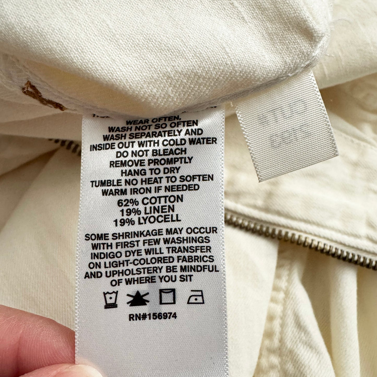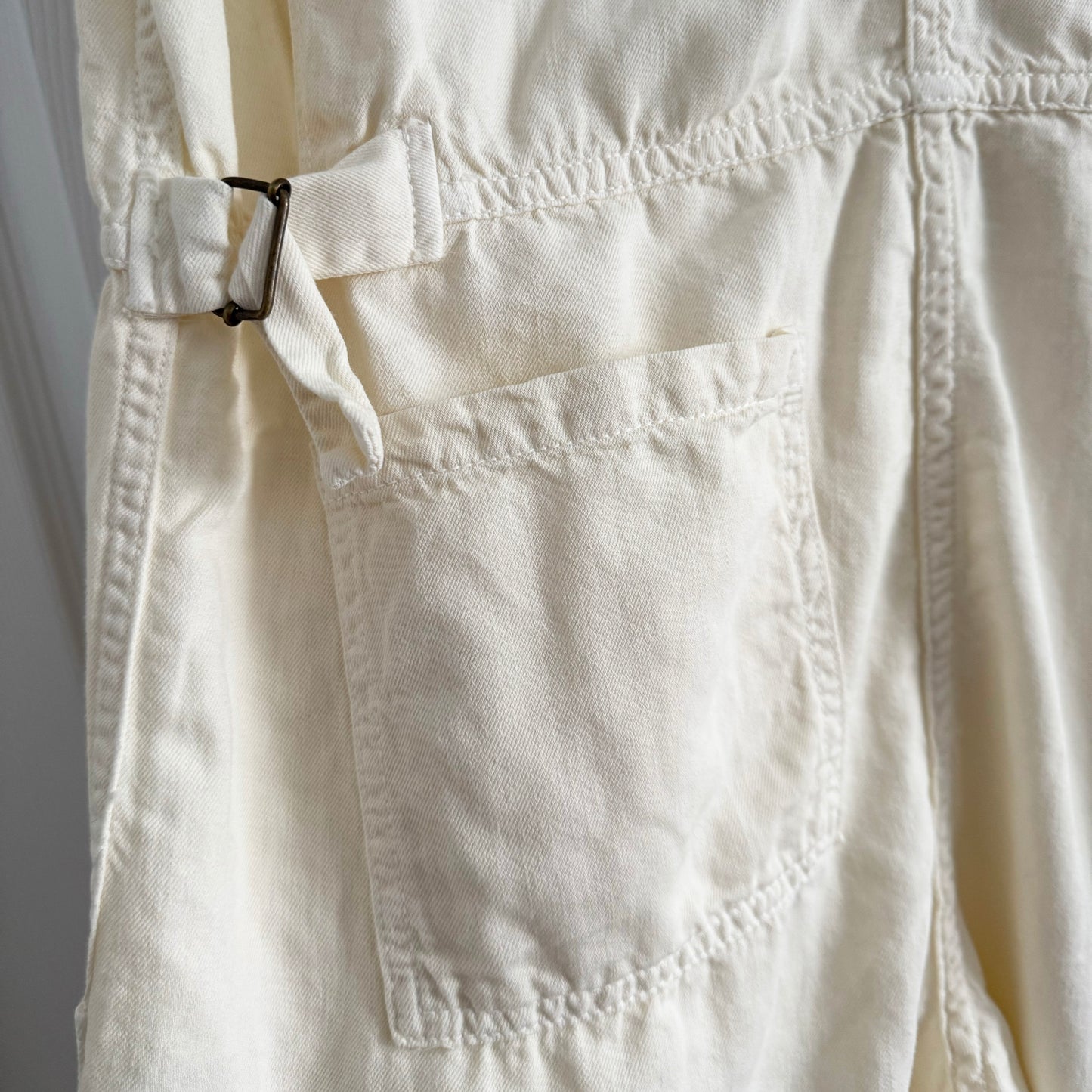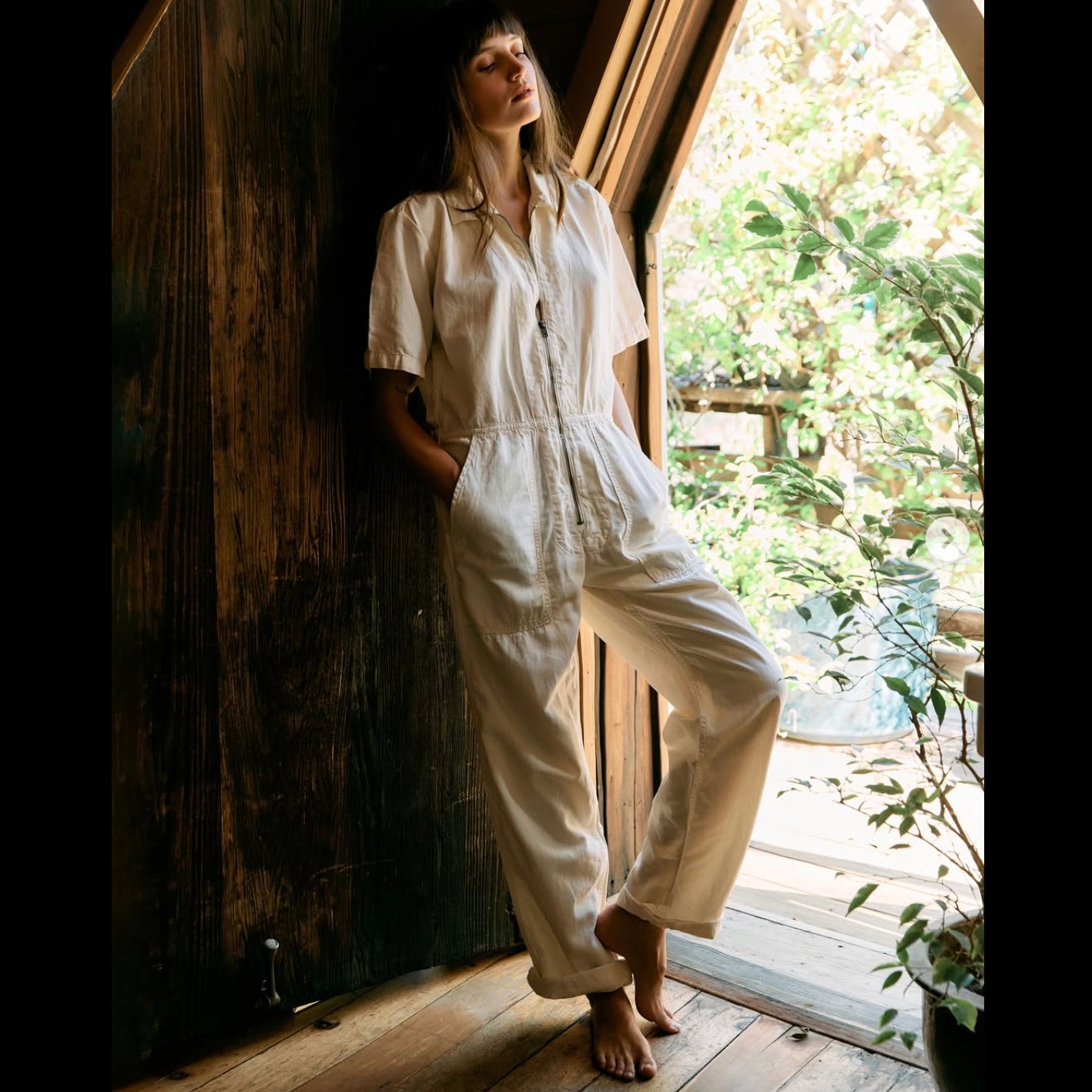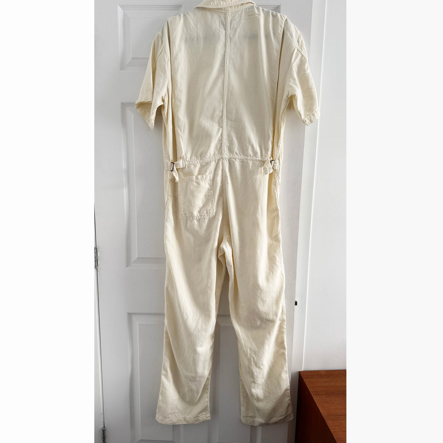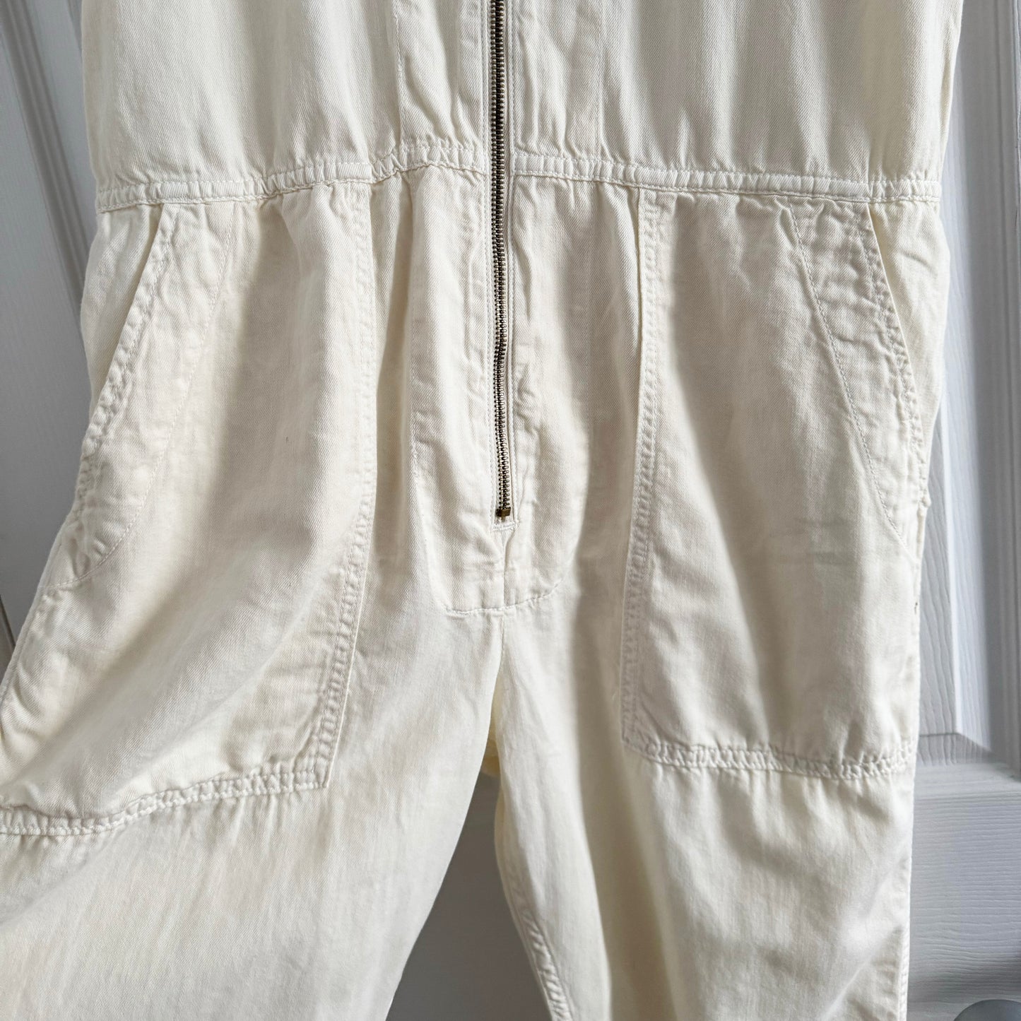 Imogene + Willie Jumpsuit in Ivory, size Medium. Fits true to size for a comfy fit. Brand new with tags! Cool and relaxed and easy - a mechanics suit, but more chic. A perfect summer piece for chilling, running errands - and a very cool swim cover up too! Zip front closure. Little tabs at the side to cinch it. 19 inches from shoulder to waist. 13 inches from waist to crotch. 29.5 inch inseam. 17.5 inch waist, measured flat. 24 inches armpit to armpit. 23 inch hip, measured flat (leave room for ease!!). 62% cotton, 19% linen, 19% lyocell. Originally $295USD (around $420CAD assuming straight exchange, but then duties, etc), and selling here for $165CAD!