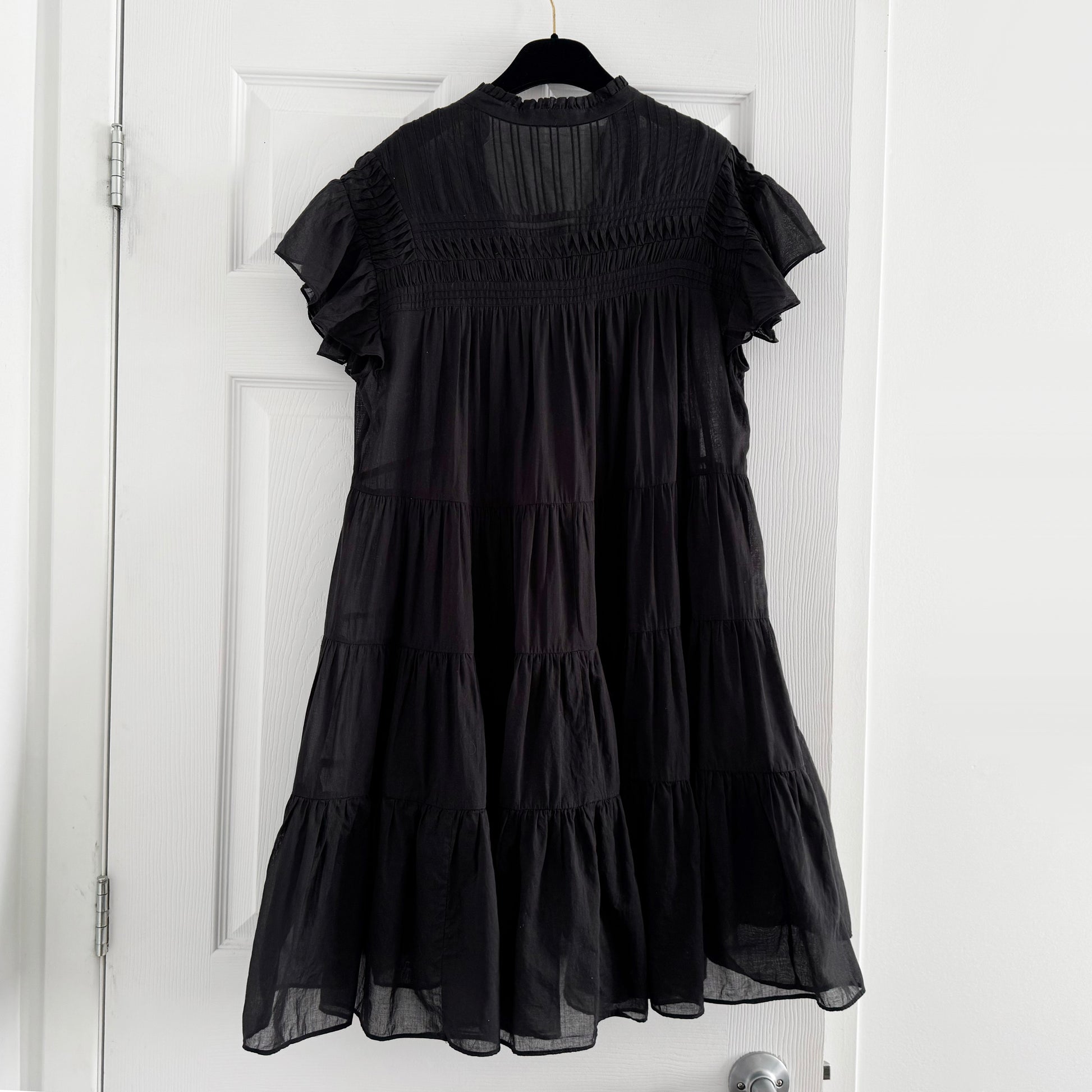 Isabel Marant Etoile "Lanikaye" Dress in Black, size 36 (fits like a comfy size small - this dress is loose fitting so it does have wiggle room, but if you size down too much the underbust seam sits kinda high - so best to stay with your usual size). One of the best, easiest little casual dresses of ALL TIME!! It's flowy and light and pretty and so versatile - perfect on vacation, around the city, layered with a blazer overtop, belted or worn alone - so so easy and cute. A total MUST HAVE. 20 inches armpit to armpit. 34 inches in length. 100% cotton. It does come with a slip - it's not the original Marant slip, but a James Perse one that's actually even nicer than the original one. Lightly worn and in very good condition. Originally $595CAD, and selling here for $175CAD!