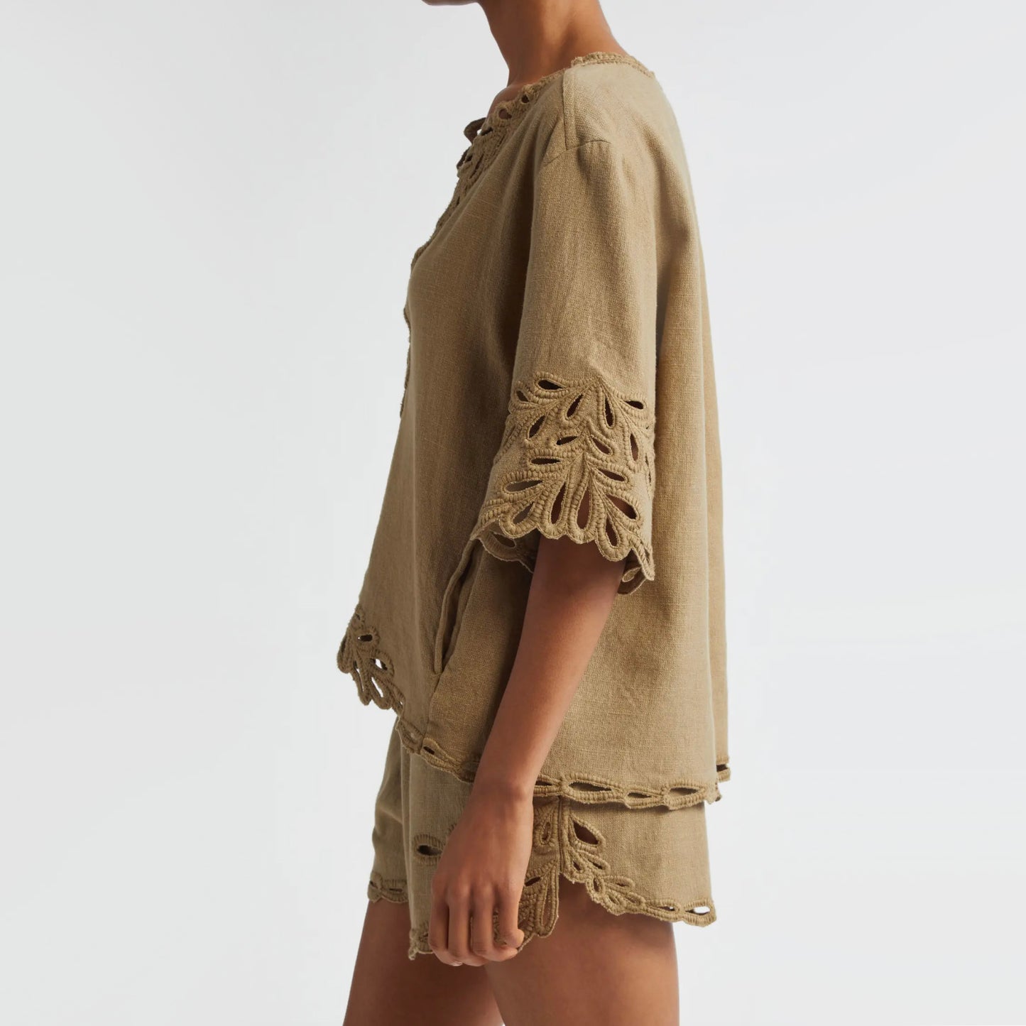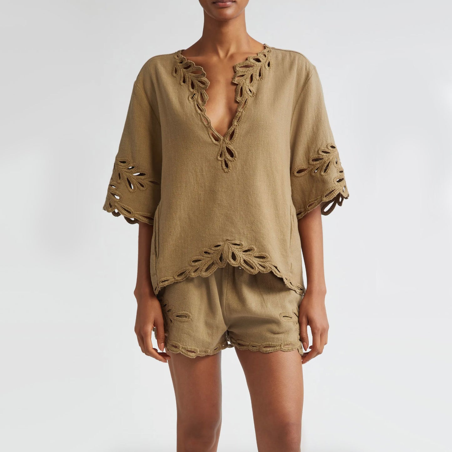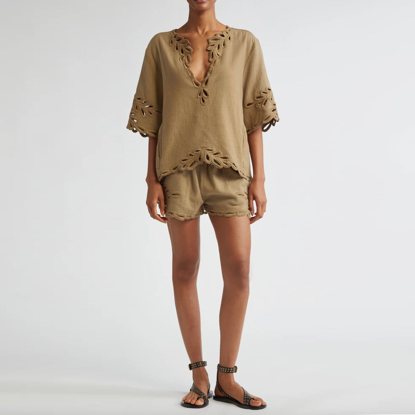 Isabel Marant Etoile Shana Top and Safa Shorts Set in Light Khaki, size 36