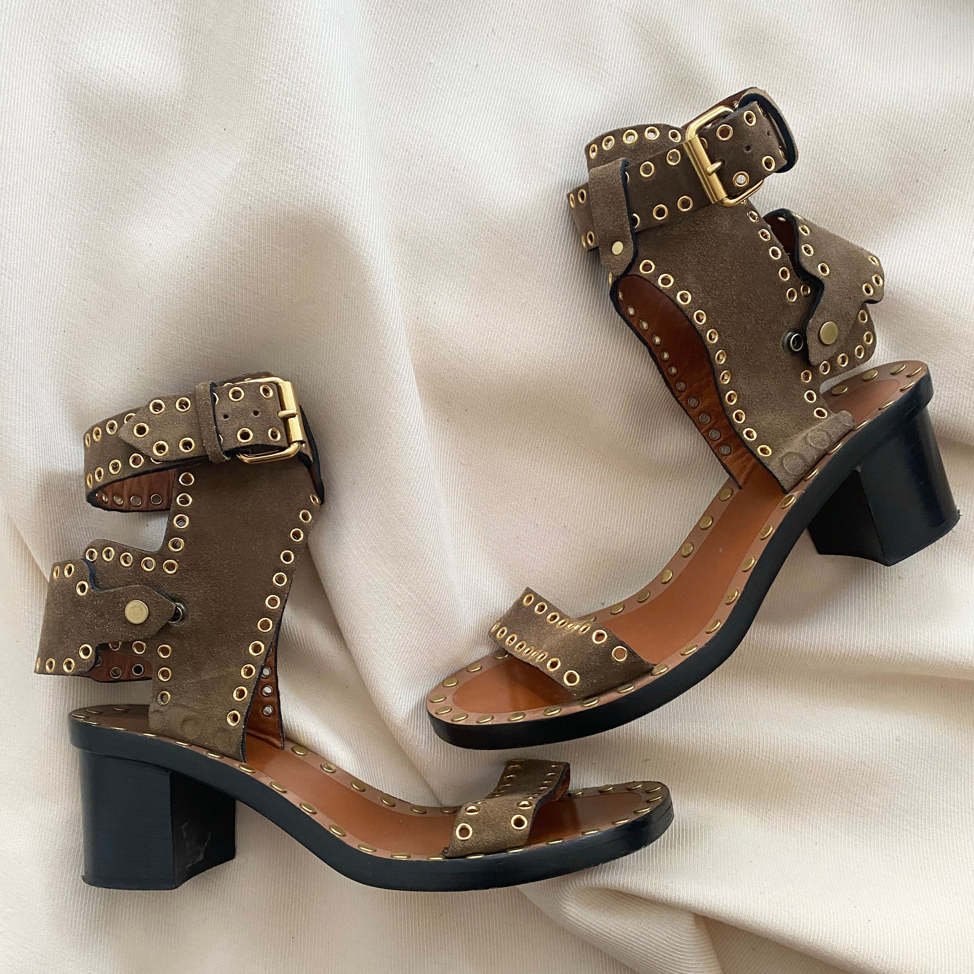 Isabel Marant "Jaeryn" Suede Sandal in Brown, size 38. Fits like 7.5/8. Such a beautiful little heel - with just enough oopmph to work with something girly, and something simple too. SO versatile, and really comfy! Lightly worn and in great condition, but does not come with original box or dustbags. Originally $895CAD, and selling here for $195CAD!