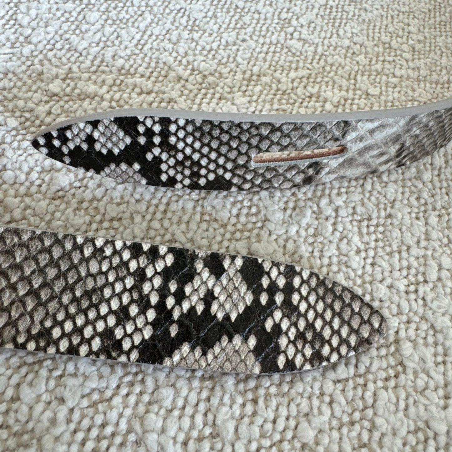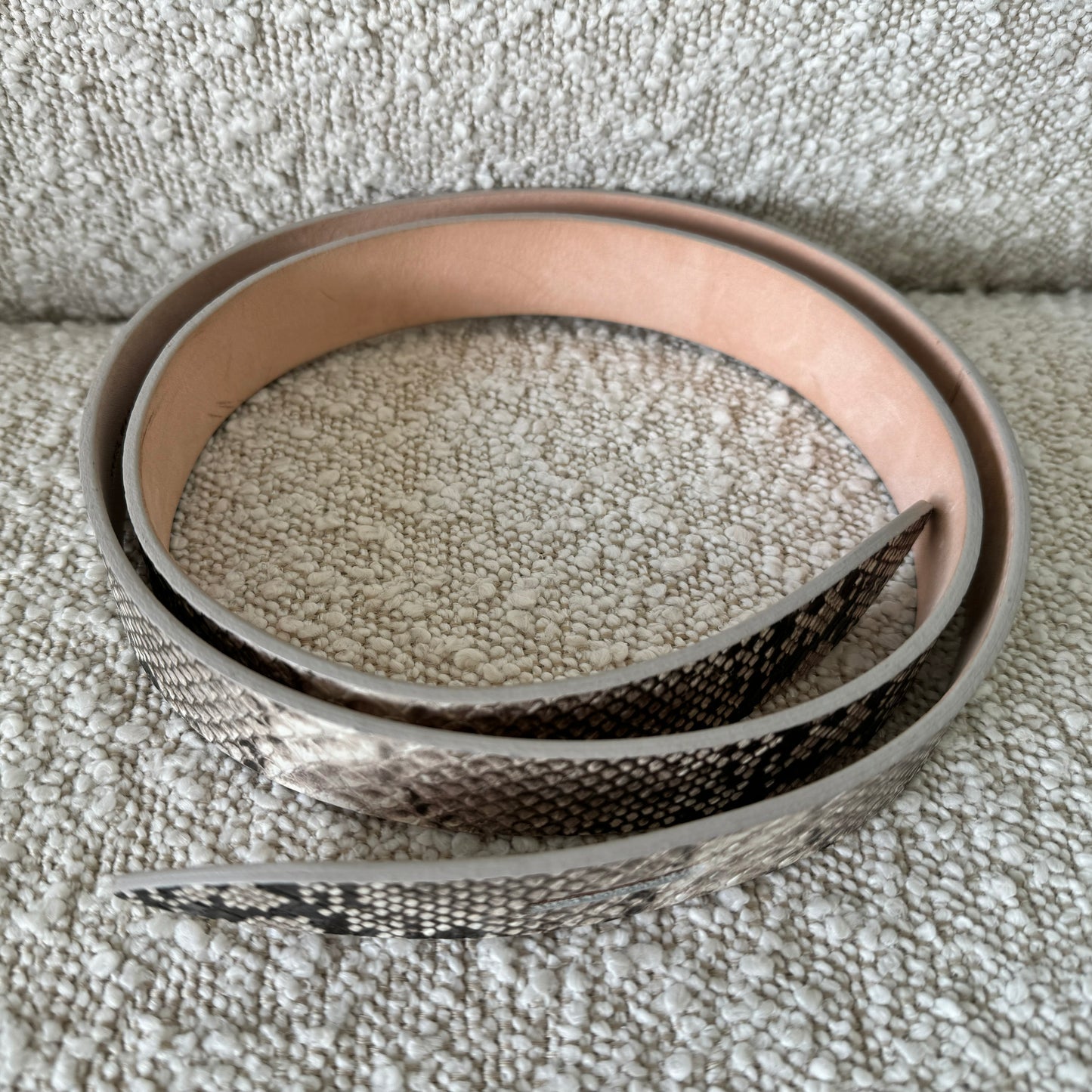 Isabel Marant "Lecce" Python Print Belt, size Large (fits size Medium). The most useful belt for dresses EVER - it loops around and creates a "tied" look - the effect is a little softer than a traditional belt with a buckle! I love the texture the snakeskin adds to a look - softer than black but works with just about everything. Tried on but never worn - a few little scuffs on the inside just from being in the closet. Originally $320CAD, and selling here for $135CAD!