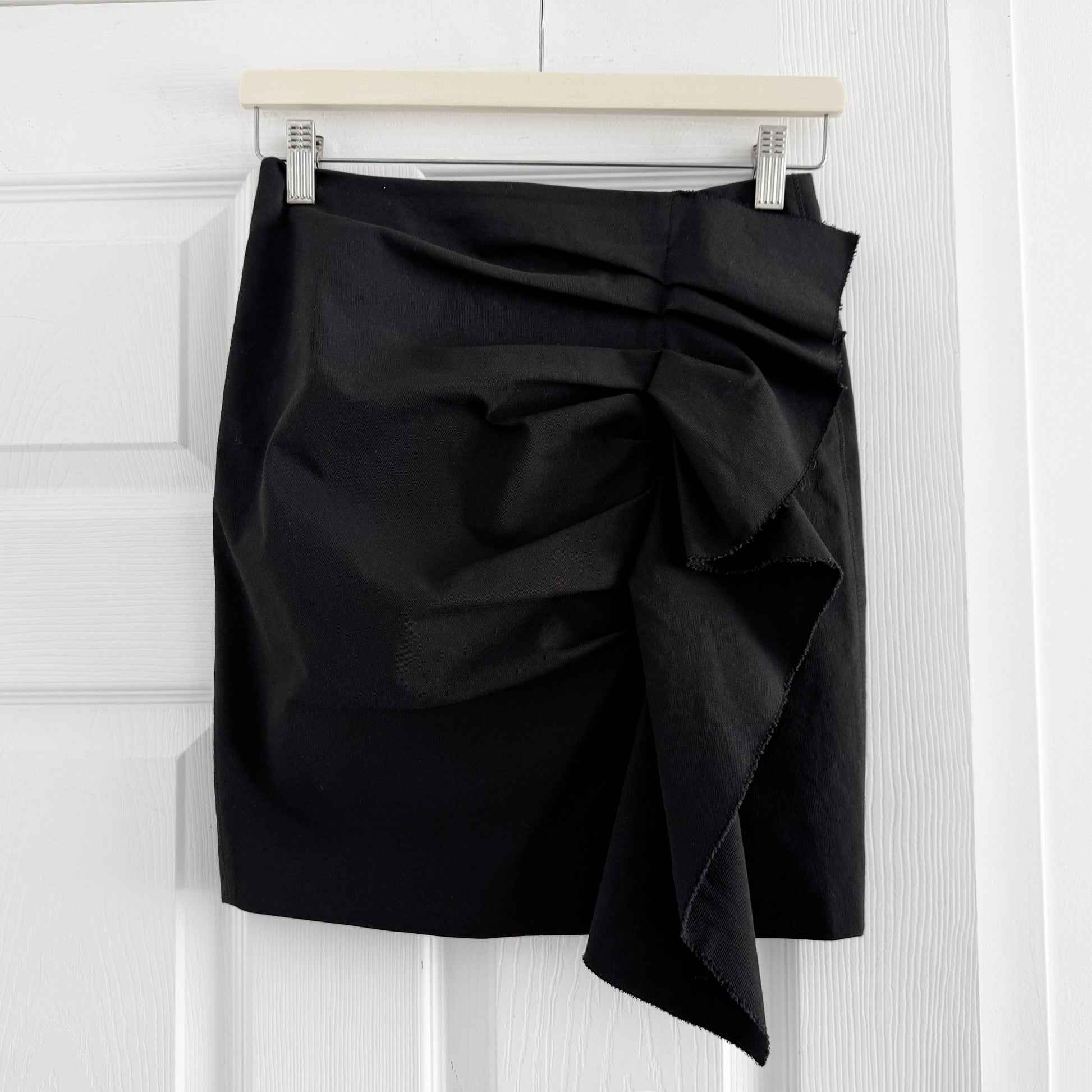 Isabel Marant "Lefly" Gathered Skirt in Black, size 36. Fits like a slim size 2. So sexy!! The gathered detailing creates such a beautiful and feminine silhouette. 17 inches in length. 13.5 inches flat at the waistband. 17 inches flat at the hips (but remember the fabric has stretch). 70% cotton, 29% viscose, 1% elastane. In excellent condition. Originally $665CAD, and selling here for $175CAD!