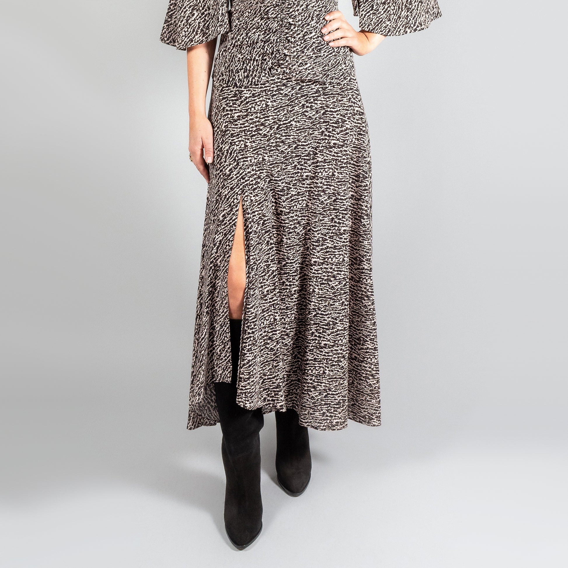 Isabel Marant "Sakura" Printed Silk Skirt, size 34 (fits size 0). Insanely chic - the slit in the front of the leg makes for so much movement when you walk! Pair with boots in transitional temps, with sandals in warm temps. Such a beautiful piece! 25 inches actual waistband. between 35 and 41 inches in length. 91% silk, 9% elastane. In excellent condition. Originally $1400CAD, and selling here for $325CAD!