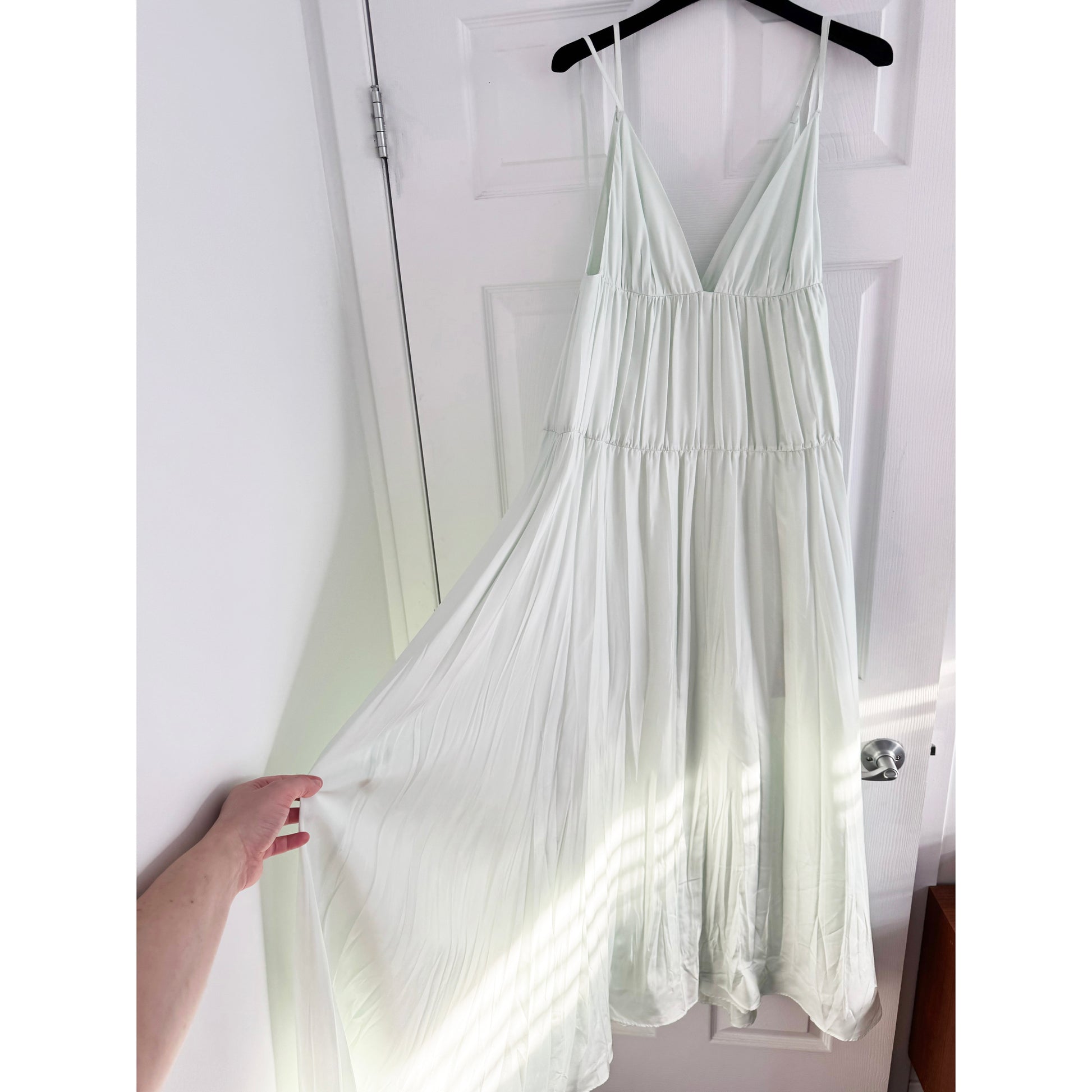 Joseph "Darnley" Silk Habotai Dress in "Aquatic", size 36 (fits like a 2/4 for a looser fit and a 4 for a closer fit - and best for someone on the taller side). Brand new with tags. Absolutely STUNNING!!! The gathered texture only adds to the dimension of this dress - cut to move so beautifully. Delicate little straps (there are two on each side, one ties at the back) enhance the beauty of the dress! It's double layered so that it's not see through. 56-59 inches in total length (someone on the petite side will likely need to alter it!. 100% silk. Originally around $1200CAD, and selling here for $325CAD!