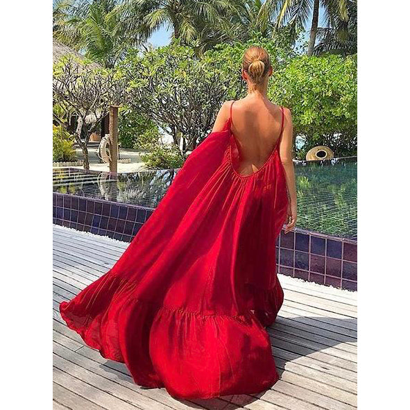 Kalita "Brigitte" Silk Maxi Dress in Purple, size M/L. Fits roomy to size by design - and really, this is ideal for someone taller! SOOOOO beautiful - like absolutely bonkers elegant - this resortwear brand makes some of the most dramatic pieces for warm weather vacations you could imagine. Wear nothing underneath (or a bathing suit if you MUST), and if you're really lucky, the wind make the dress billow! The silk is very light, nearly sheer (perfect if you're not too conservative about nudity), and moves like only silk of this quality can when you walk. 48 inches from the shoulder to the top of the flounce, and 17 inches from the flounce to the hem. 100% silk. In excellent condition. Originally between $1100 and $1300CAD, depending on where you bought it, and selling here for $385CAD!