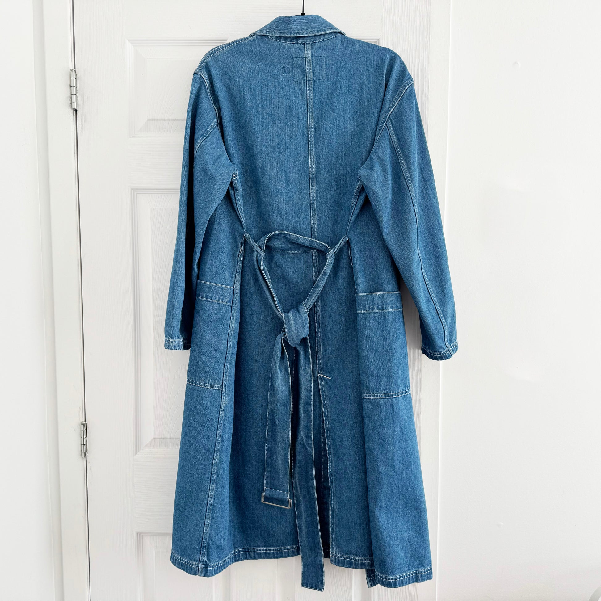 Levi's Made and Crafted "Surft" Denim Coat, size Small. Fits comfortably true to size. Brand new with tags! From the Made in Japan collection - beautiful quality for an unexpected casual take on a trench coat! Perfect for casual but cool evenings outdoors - from the city to the coast - longer than a traditional denim jacket (but with all same the ease), and lower maintenance than a classic trench (sitting on a log at a beach bonfire? this is much more chill). 45 inches in length from shoulder to hem. 100% cotton. Originally $458CAD, and selling here for $165CAD!