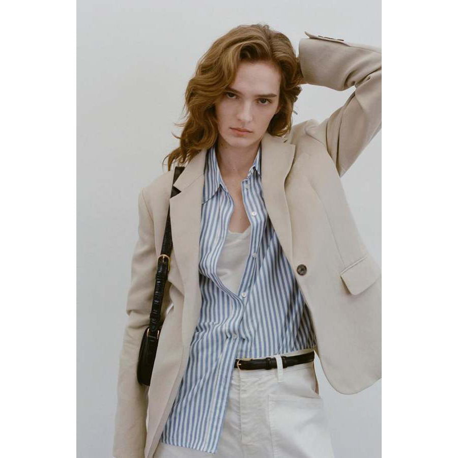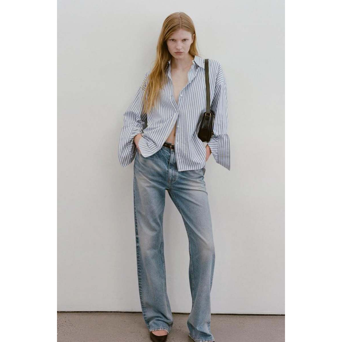 Nili Lotan "Mael" Oversize Shirt in Sky Blue Stripe, size XS. Fits oversize by design - but could also work for a small that wanted it less oversized. SUCH a beautiful classic wardrobe staple - absolutely incredible to pick pieces like this up here! Pair with anything from denim shorts to a satin slip skirt to a loose trouser. Comfy pieces like this are always a good idea. 23 inches armpit to armpit. 27 inches in length. 100% cotton. Worn only a few times and in excellent condition. Originally $750CAD, and selling here for $265CAD!