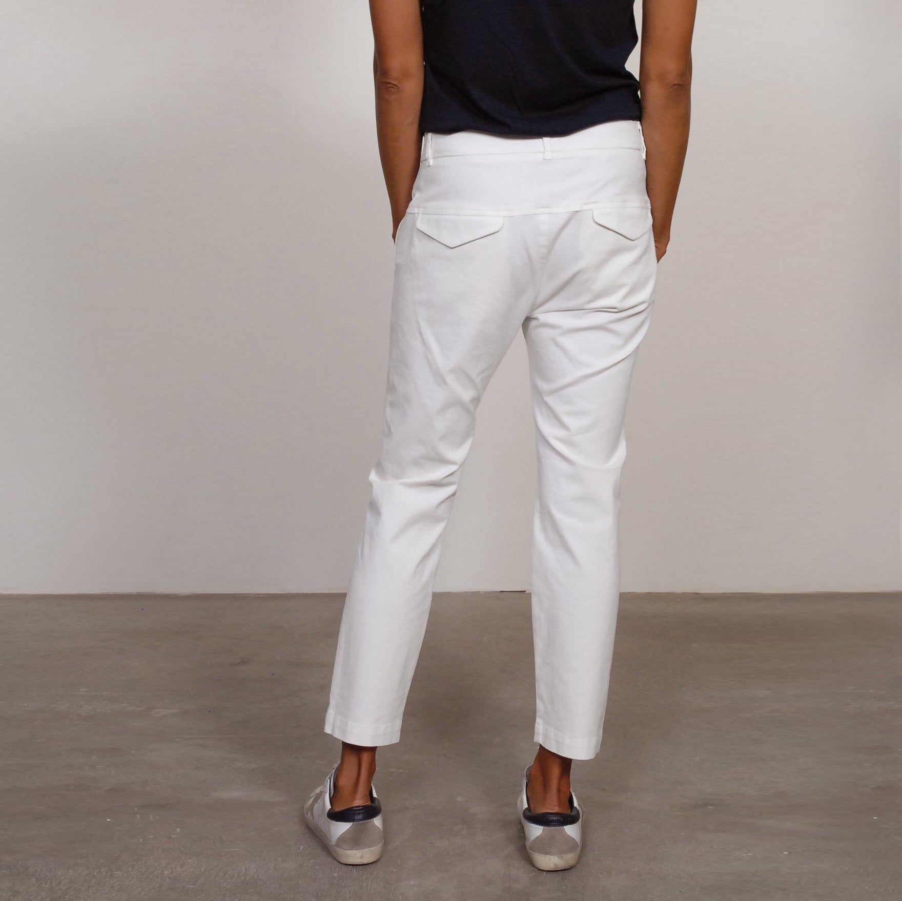 Nili Lotan "Tel Aviv" pants in "Eggshell", size 10. Fits true to size, but if we are leaning, better for an 8/10 - for some reason people often liked the lighter coloured ones looser than the darker ones. An iconic pant in her collection since the very beginning - it's easy and timeless and really just an all around great fit. This pant does tend to work the best on someone who isn't TOO too curvy, as the cut from the waist to the hip is fairly straight up and down. 10 inch rise. 25 inch inseam. 17.5 inch waistband (which is meant to sit on the hip) - and keep it mind it has a little give to it. 98% cotton, 2% elastane. In excellent condition. Originally $450CAD, and selling here for $165CAD!
