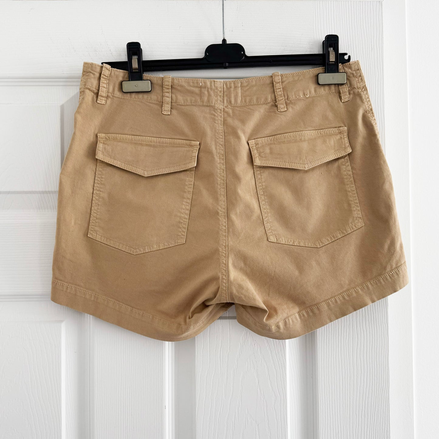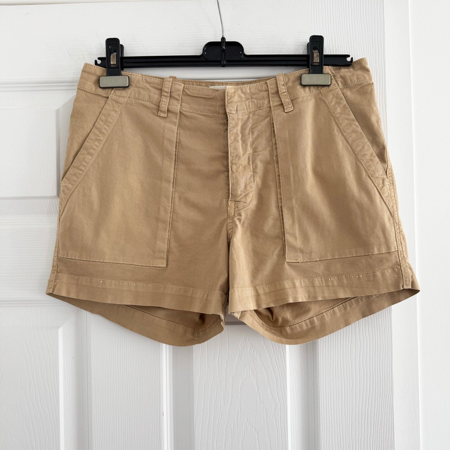 Nili Lotan Utility Shorts in Tan, size 6. Fits true to size - good for about a size 28 in jeans. An easy and awesome short for warm weather - the flap pockets on the bum are super flattering! Part of the collection every season for good reason. They're a great staple - just annoying to pay full price for, no? They should just magically appear in your closet when it's warm. 9.75 inch rise. 33 inches actual waistband. 3 inch inseam. 97% cotton, 3% elastane. In excellent condition. Originally $425CAD, and selling here for $145CAD!
