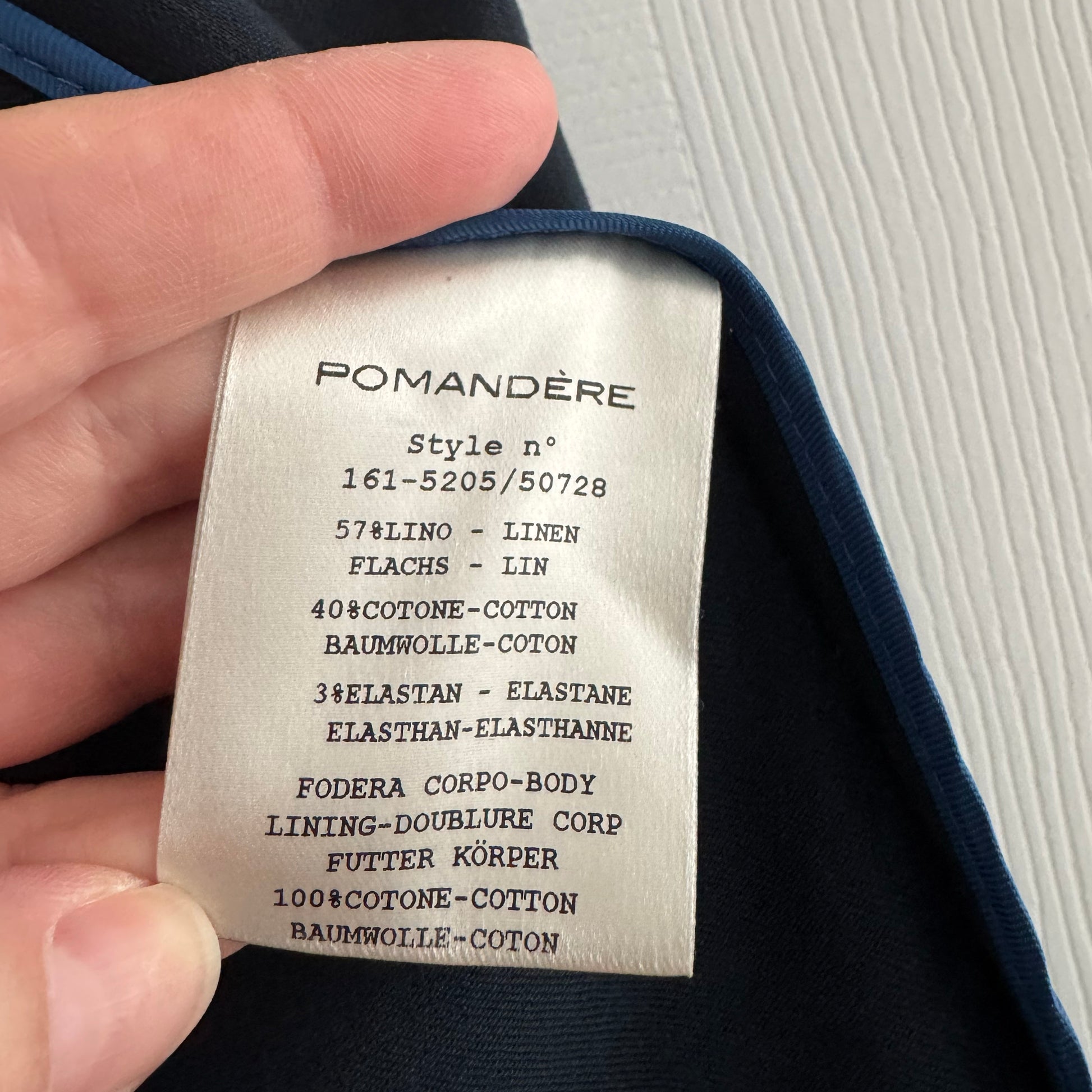 Pomandere Navy Blazer, size 38IT (fits size 0-2). A beautiful classic jacket - as timeless as it gets! This italian label makes such perfect things and in beautiful quality. 25.5 inches in length. 18 inches armpit to armpit. The fit is fairly straight down, and it measures 18 flat across at the waist as well. 57% linen, 40% cotton, 3% elastane. In excellent condition. Originally $650CAD, and selling here for $135CAD!