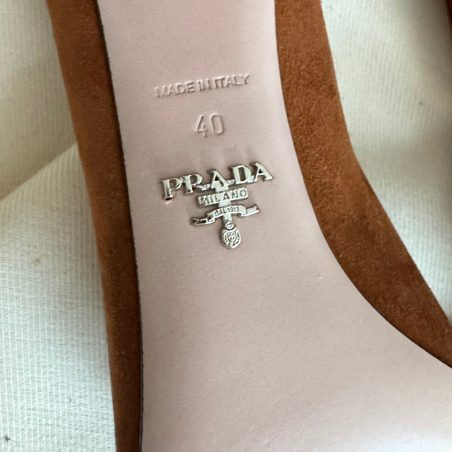PRADA Ornament-embellished Suede Loafer Pump In Palissaedro, size 40