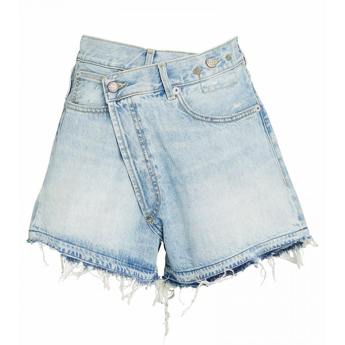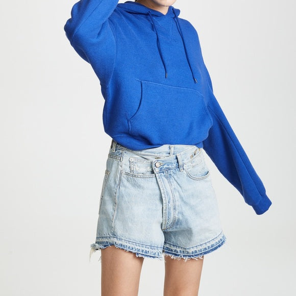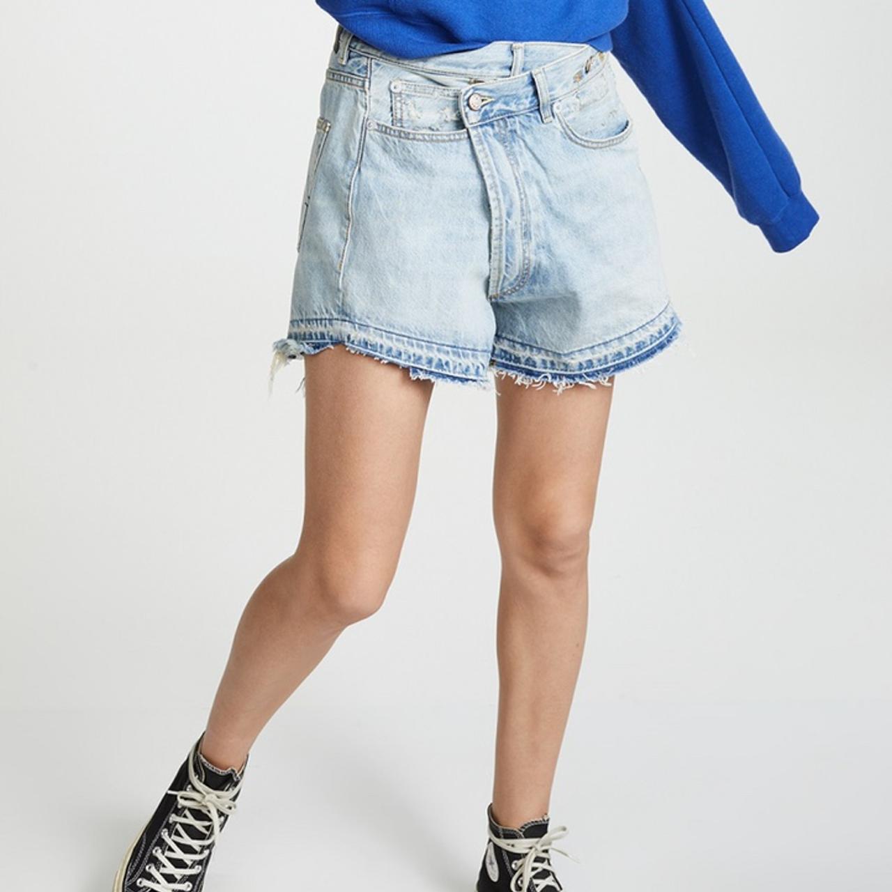 R13 Crossover Shorts in Tilly with let down hem, size 27 (fits true to size, or like a 28 for someone wanting them less slouchy). Undeniably incredible denim shorts - just the right amount of rebellious - for wearing with everything from a tee shirt, a blazer or a silk camisole. Make sure you don't wear a top that covers the crossover fly - tucking in at the front works well. The distressed detailing throughout adds so much texture - I love the unpicked hem - always have and I always will! Pair them with sneakers, sandals, or combat boots - you name it!! 31 inches actual waistband measurement, which is meant to sit down on the hip a little. About 13 inches in length. 100% cotton. Worn a handful of times and freshly washed (hung to dry of course). Originally like $500CAD, and selling here for $175CAD!