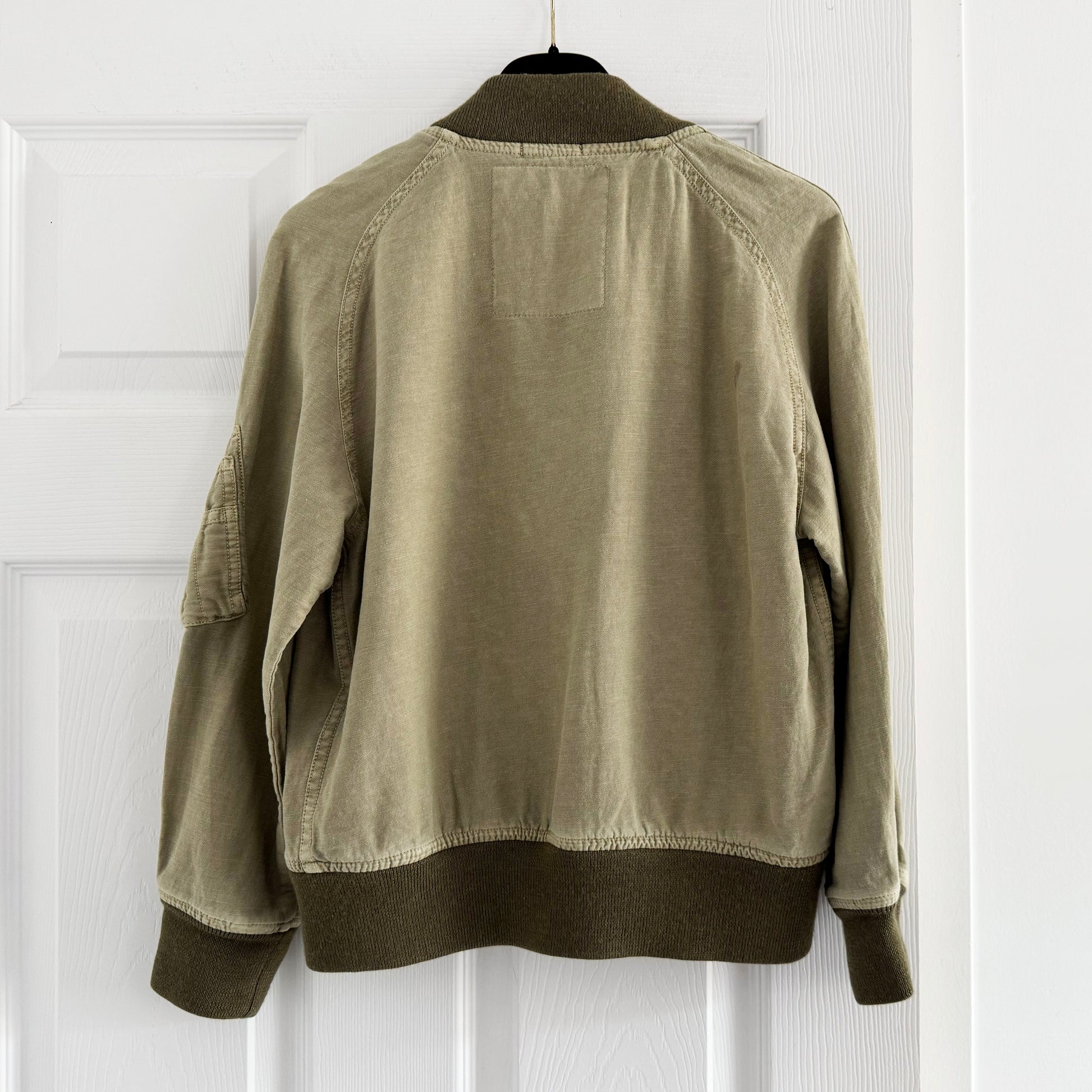 R13 Shrunken Bomber Jacket in Army Green, size Medium. It's a shrunken fit - depends on how you want it to fit, but good for anyone in the S-M range. Brand new with tags! Such a gorgeous piece in such a gorgeous fabric. I find jackets like this SO functional over dresses, pants, shorts - anything - for running errands and casual wear alike. This beauty is done in a soft, lightweight cotton/hemp blend - it's rugged enough to feel cool but simple enough to pair with anything. 70% cotton, 30% hemp. Originally $585CAD, and selling here for $215CAD!