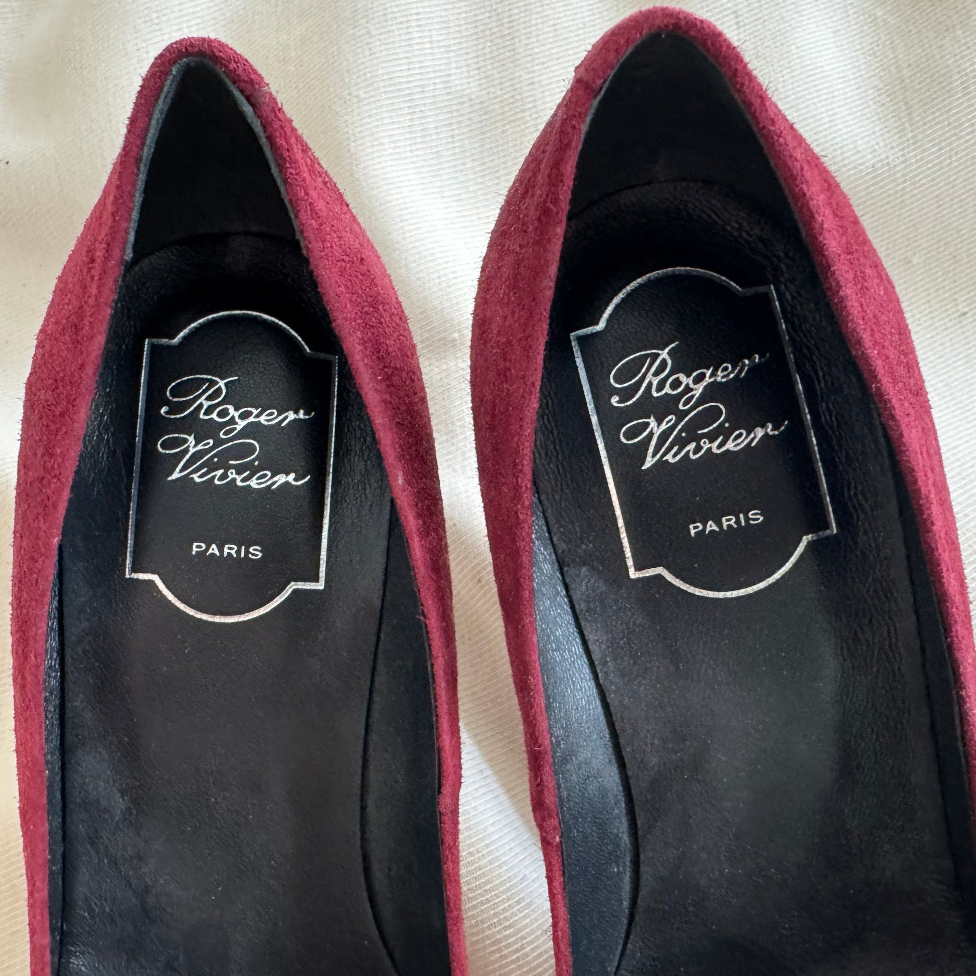 Roger Vivier "Belle Vivier Trompette 70mm Suede Pumps In Burgundy, size 40.5