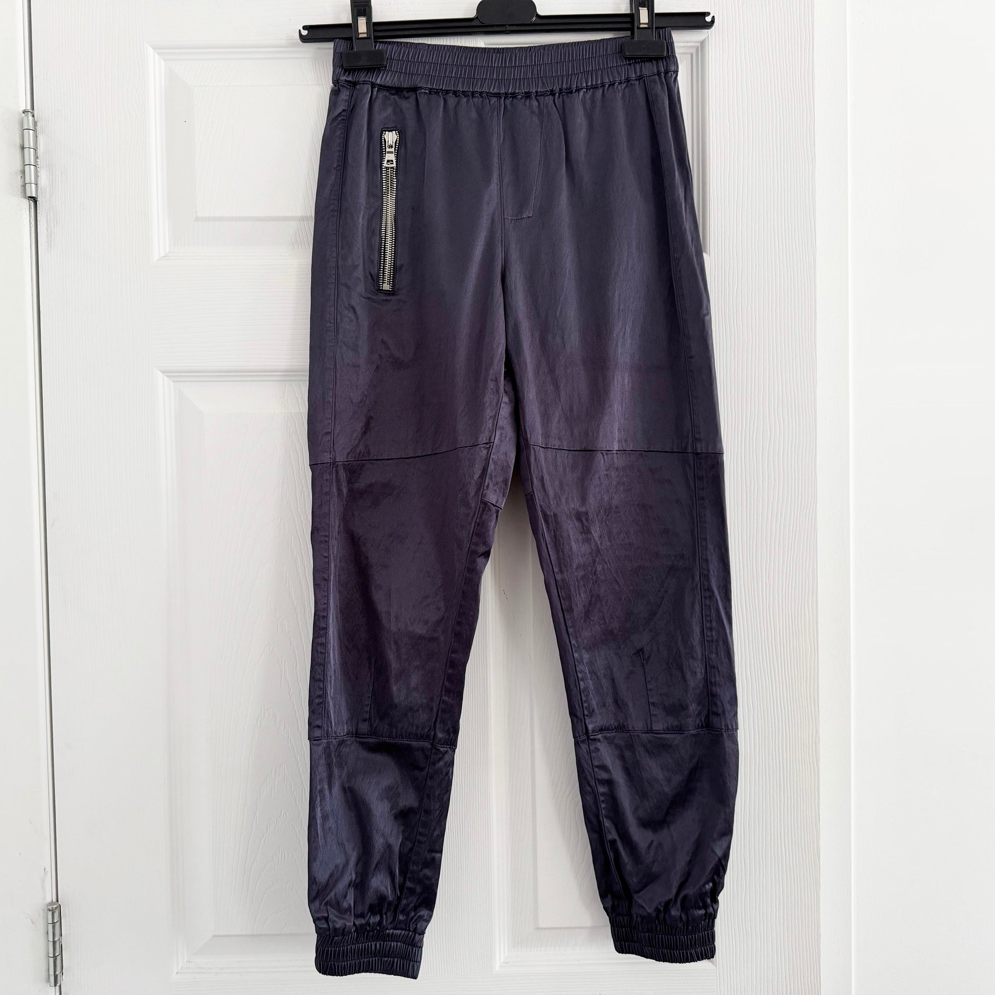 RtA "Finn" Joggers in Navy, size Small (fits XS/S). Such a cute sporty pant - something for cute weekend errands, and for going to the game - not so much for playing actual sports! lol 13 inch waistband, unstretched. 35 inches total length. 10 inch rise. 25.5 inch inseam .53% cotton, 43% viscose, 4% elastane. Originally $400CAD, and selling here for $75CAD!
