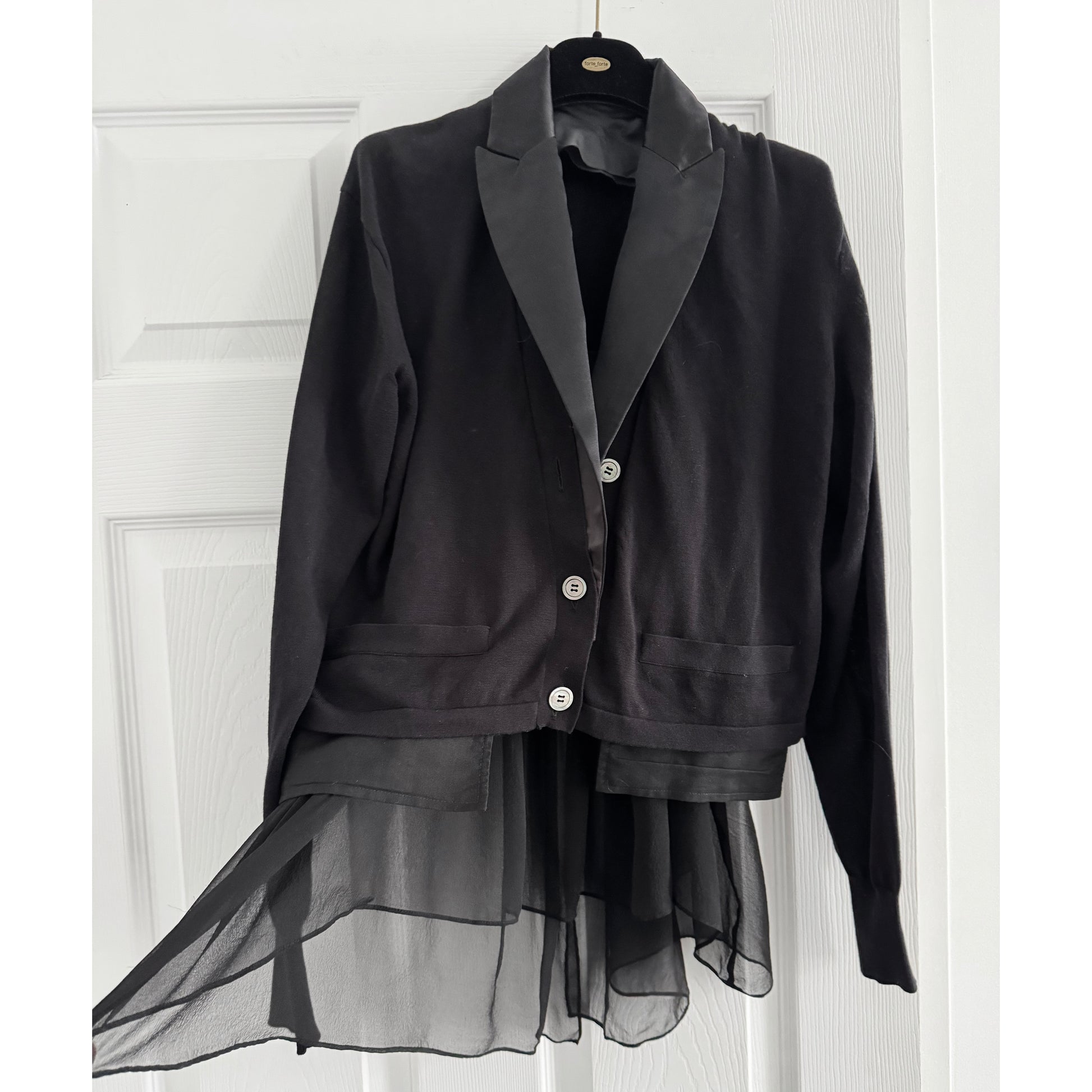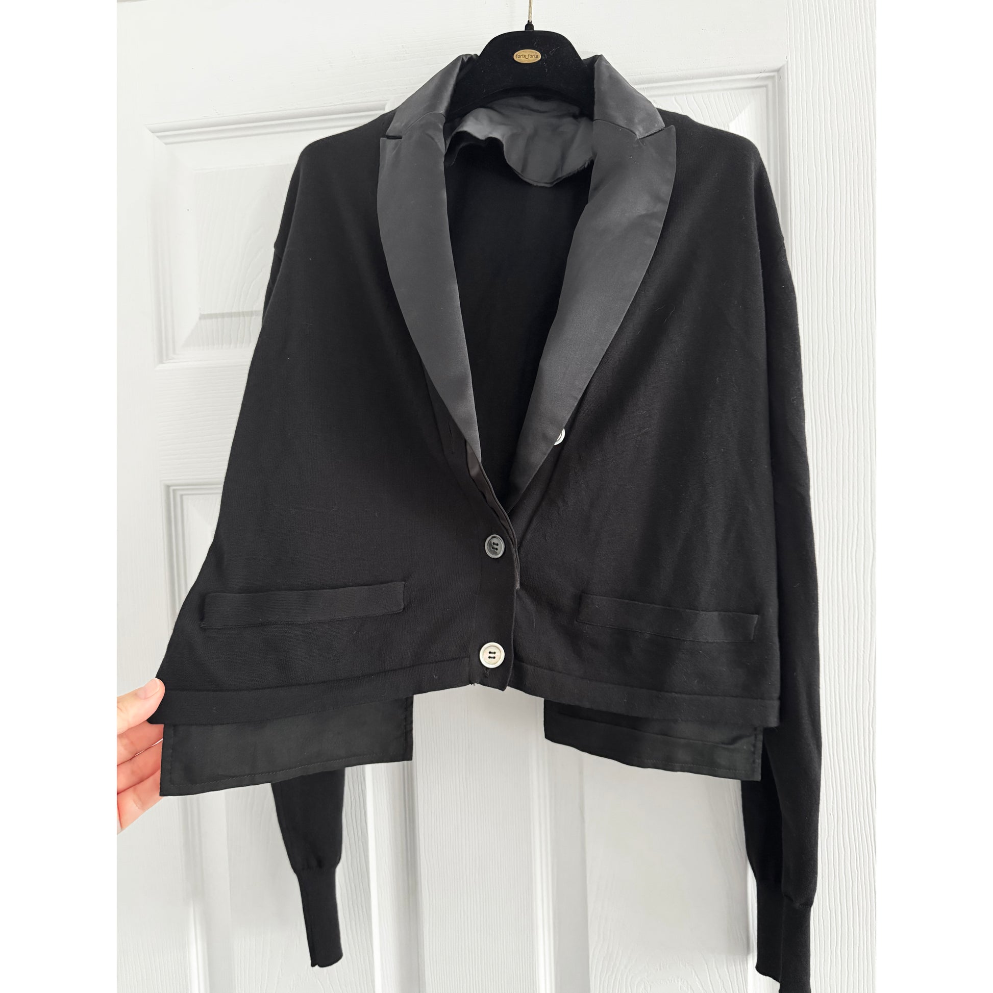 Sacai Cropped Tuxedo Cardigan in Black, fits size XS/S