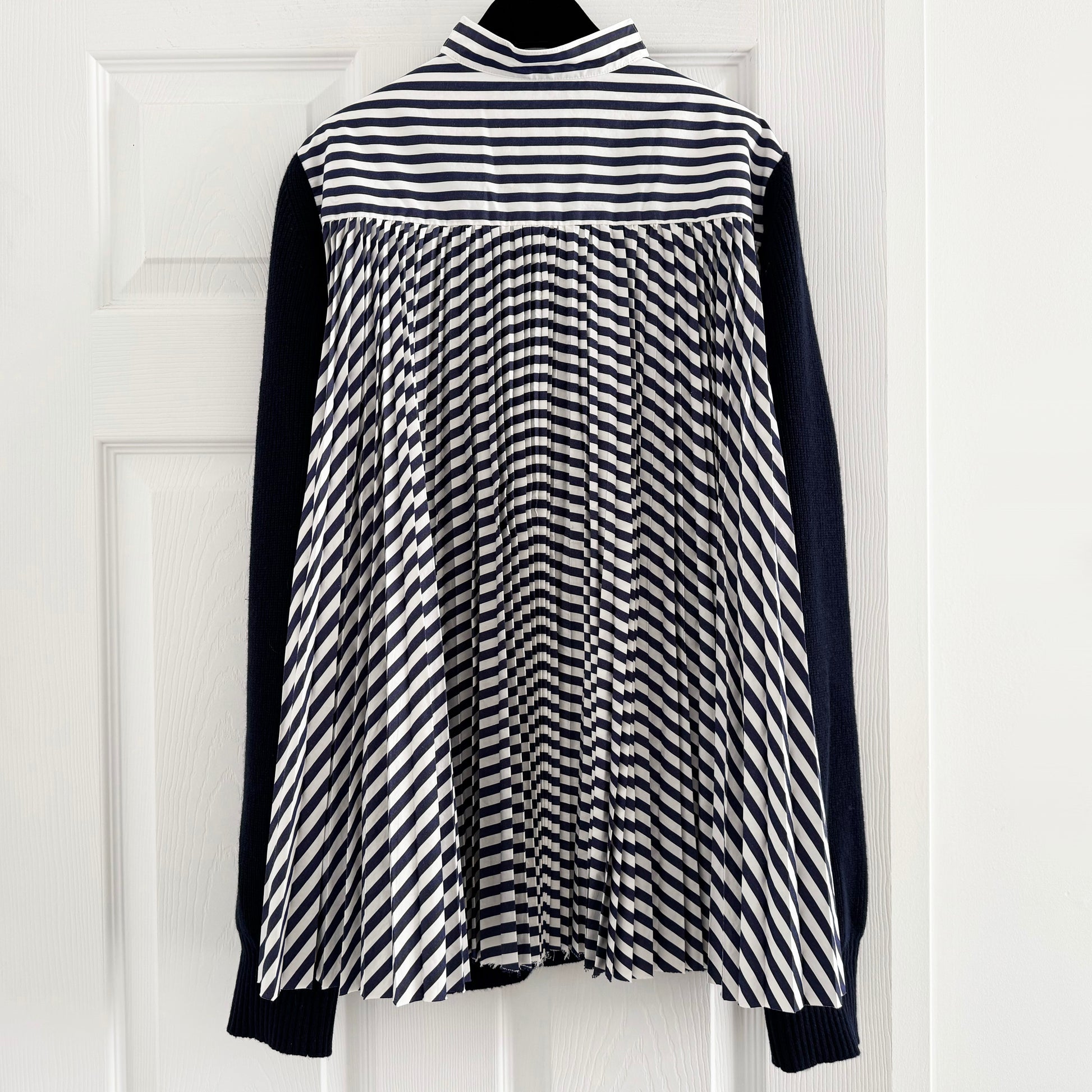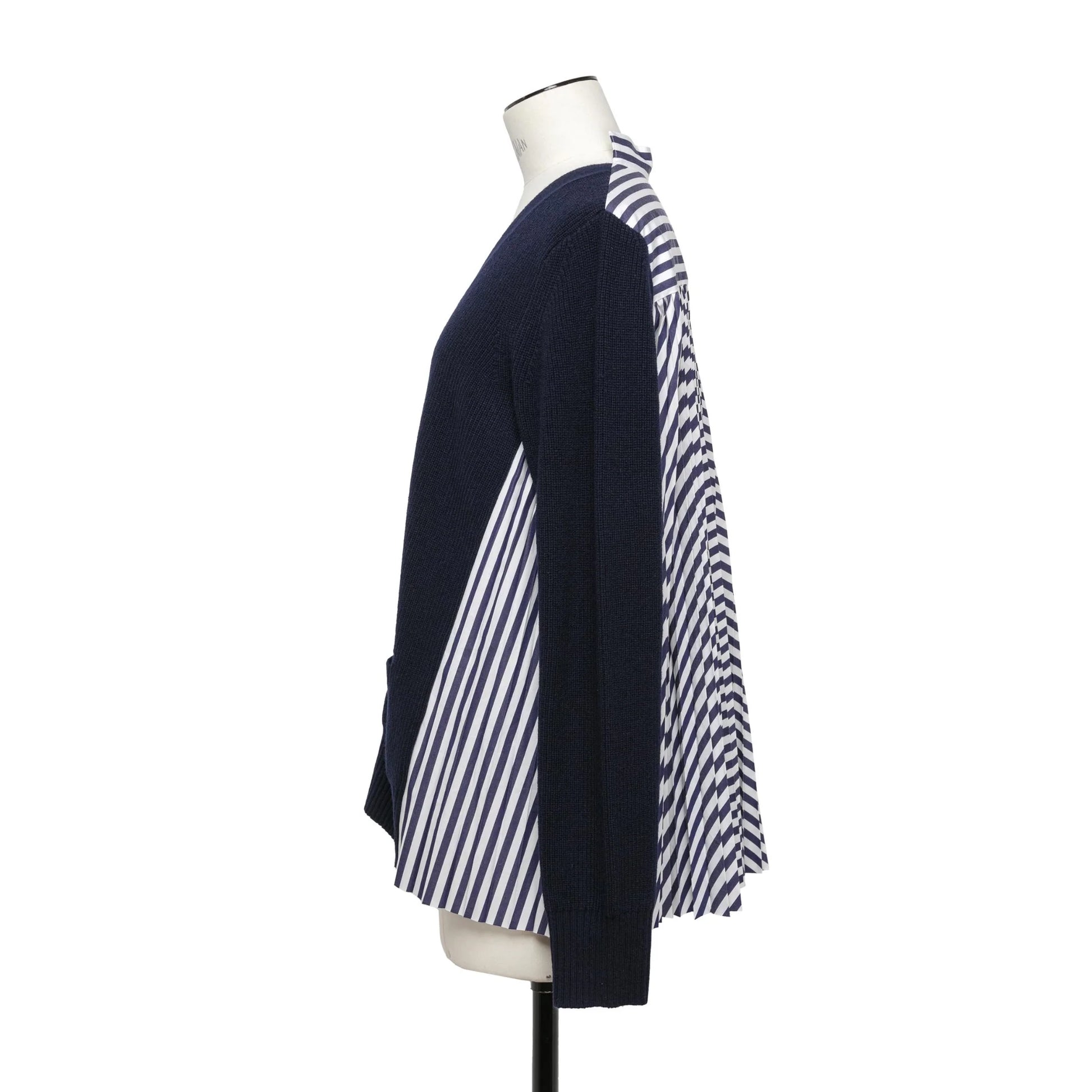 Sacai Wool Knit x Cotton Poplin Cardigan in Navy/Navy Stripe, size "4"
