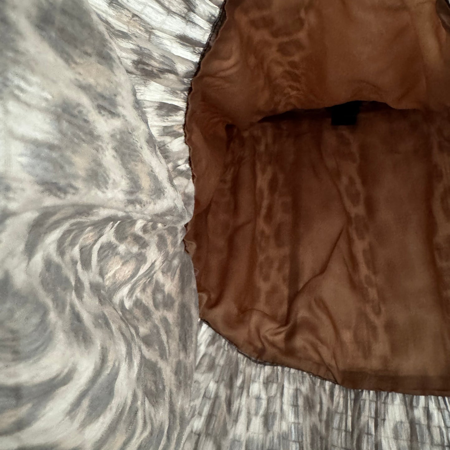 Smythe Drop Waist Leopard Print Skirt, size 00. Fits a little bit comfy to size. If you love a pop of leopard print, you know - leopard print isn't really a print - it's a neutral! Hahaha but, like, actually. I like how this could be for day, or night - from April to October - switch the tee or tank out for a cashmere sweater, and swap the open toe sandal for a closed toe! It's a beauty with flats or heels. 28 inches actual waistband. 40 inches total length. 100% polyester. In excellent condition. Originally $395CAD, and selling here for $135CAD!