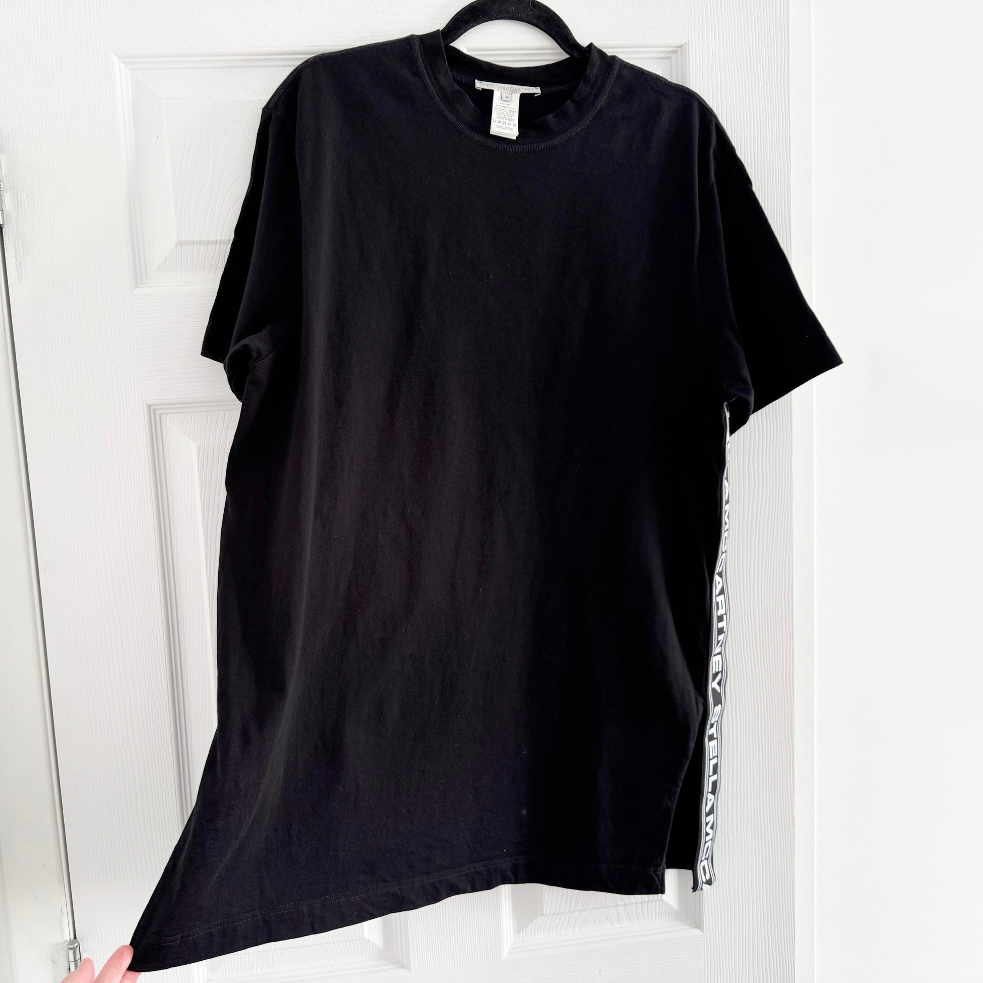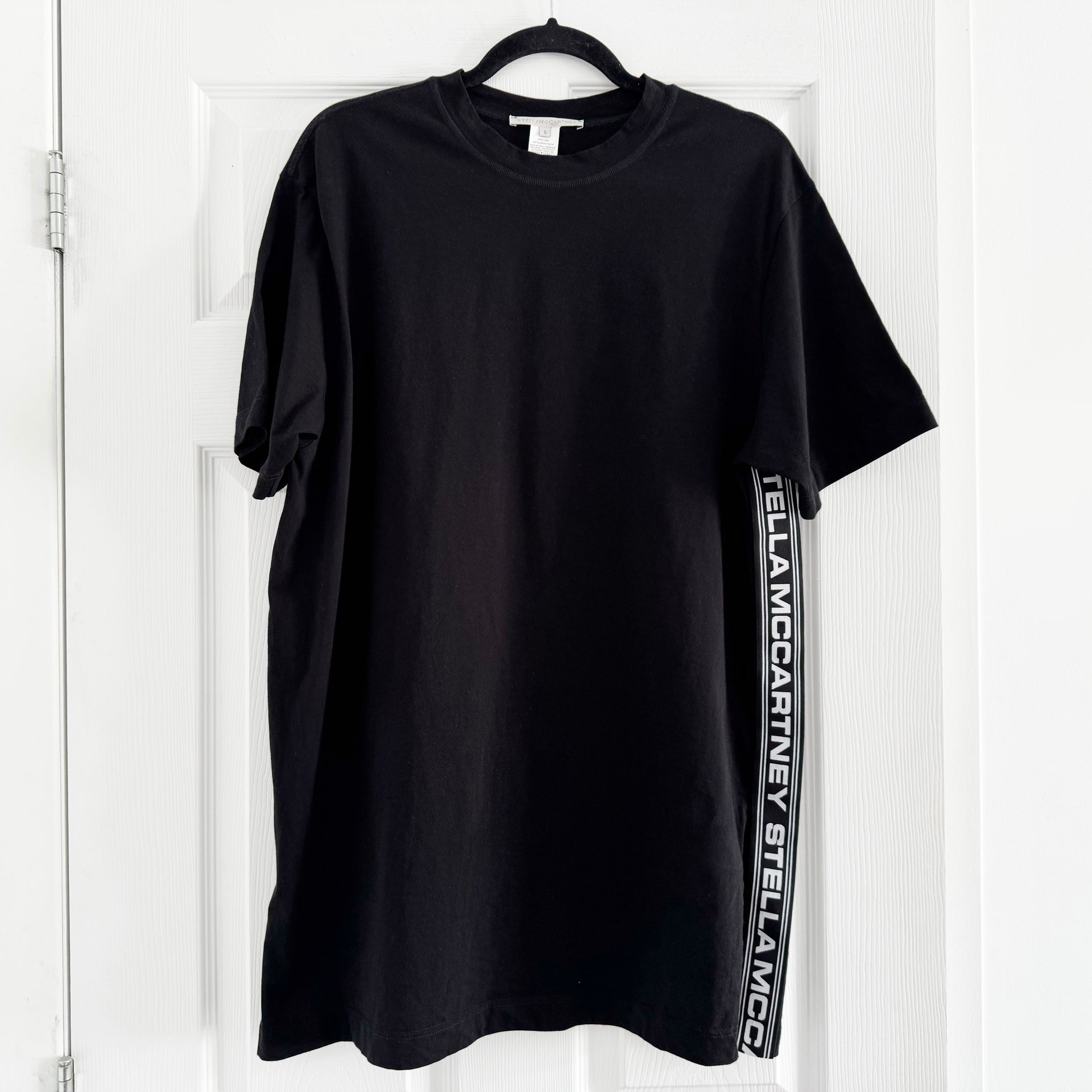 Stella McCartney Logo Tape Mini Dress, size small. Insanely cute - I love the sporty vibes of this - throw over bike shorts to do ACTUAL sporty things, like riding a bike, or if your in your party girl era, wear it out dancing. It would be a great beach cover up. I feel like it would be adorbs for just errands with sneakers - it seems that perfect mix of comfy and cute. It's a nice lightweight piece - great for warm temps. 32 inches in total length from shoulder to hem. The slits on the side are 7.5 inches up from the bottom. 22 inches armpit to armpit (that has to be loose fitting for you for this dress to work!) 100% cotton. Worn once or twice and in very good condition. Originally about $500CAD, and selling here for $165CAD!