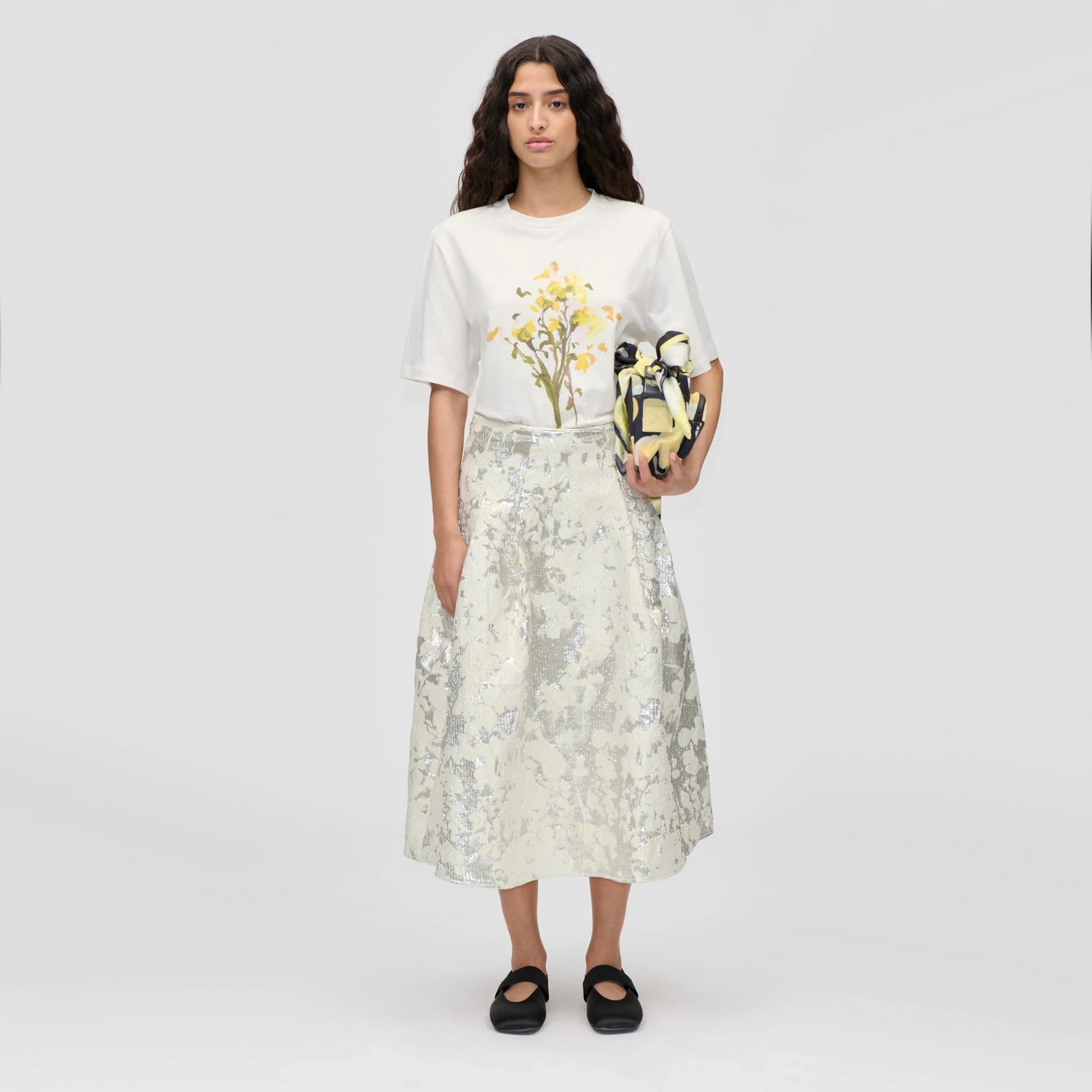 Stine Goya Lurex Midi Skirt in Metallic, size Small