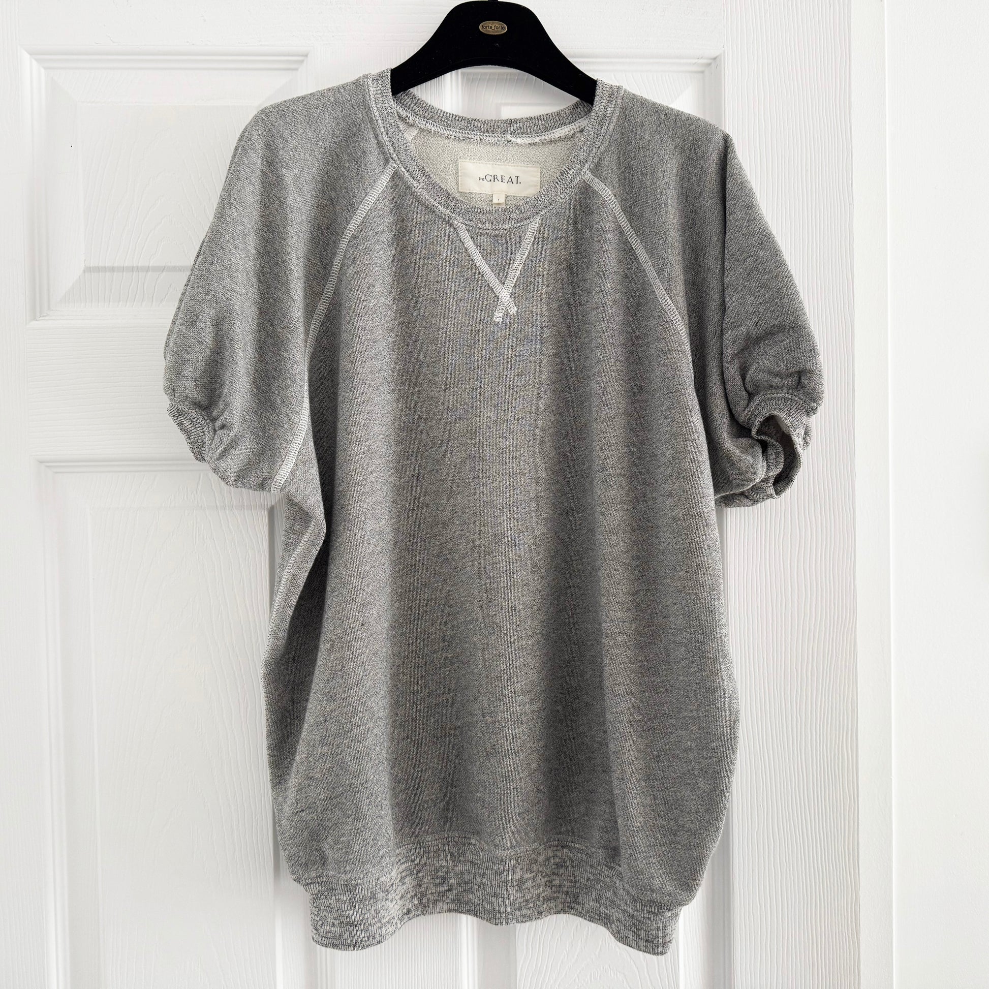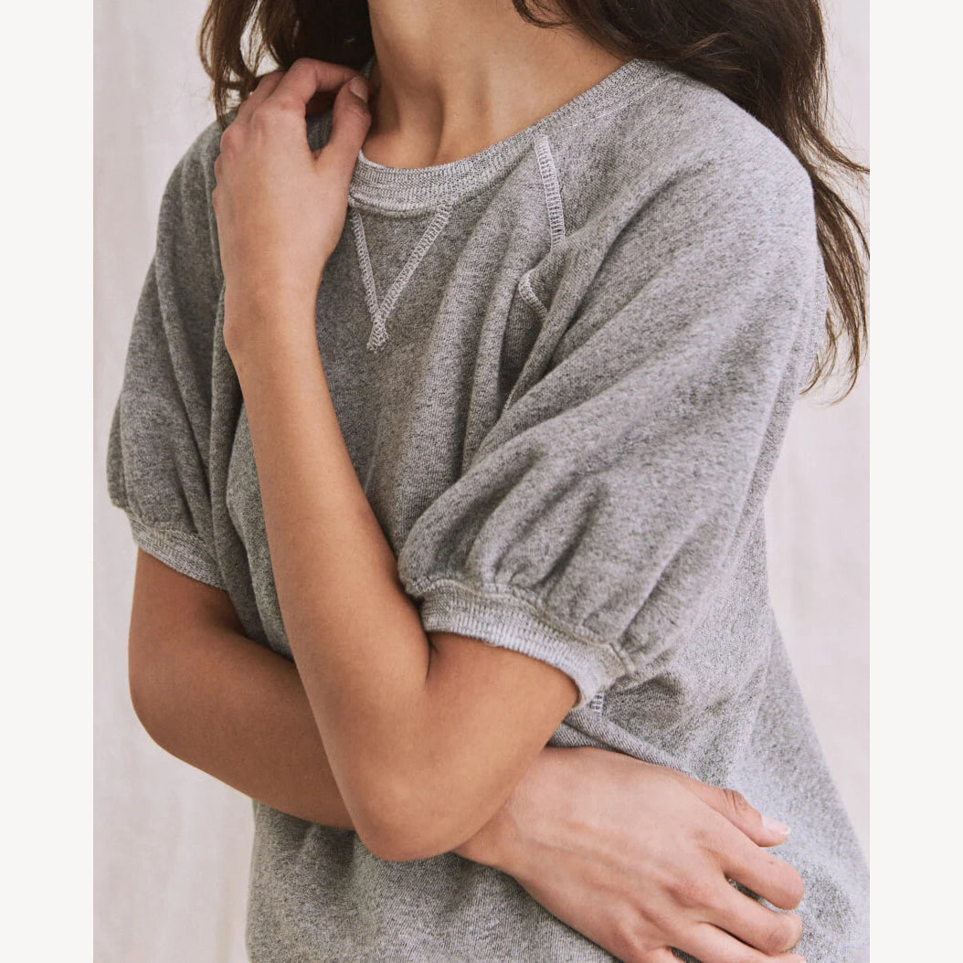 The Great Short Puff Sleeve Sweatshirt in Varsity Grey, size "1" (fits S/M)